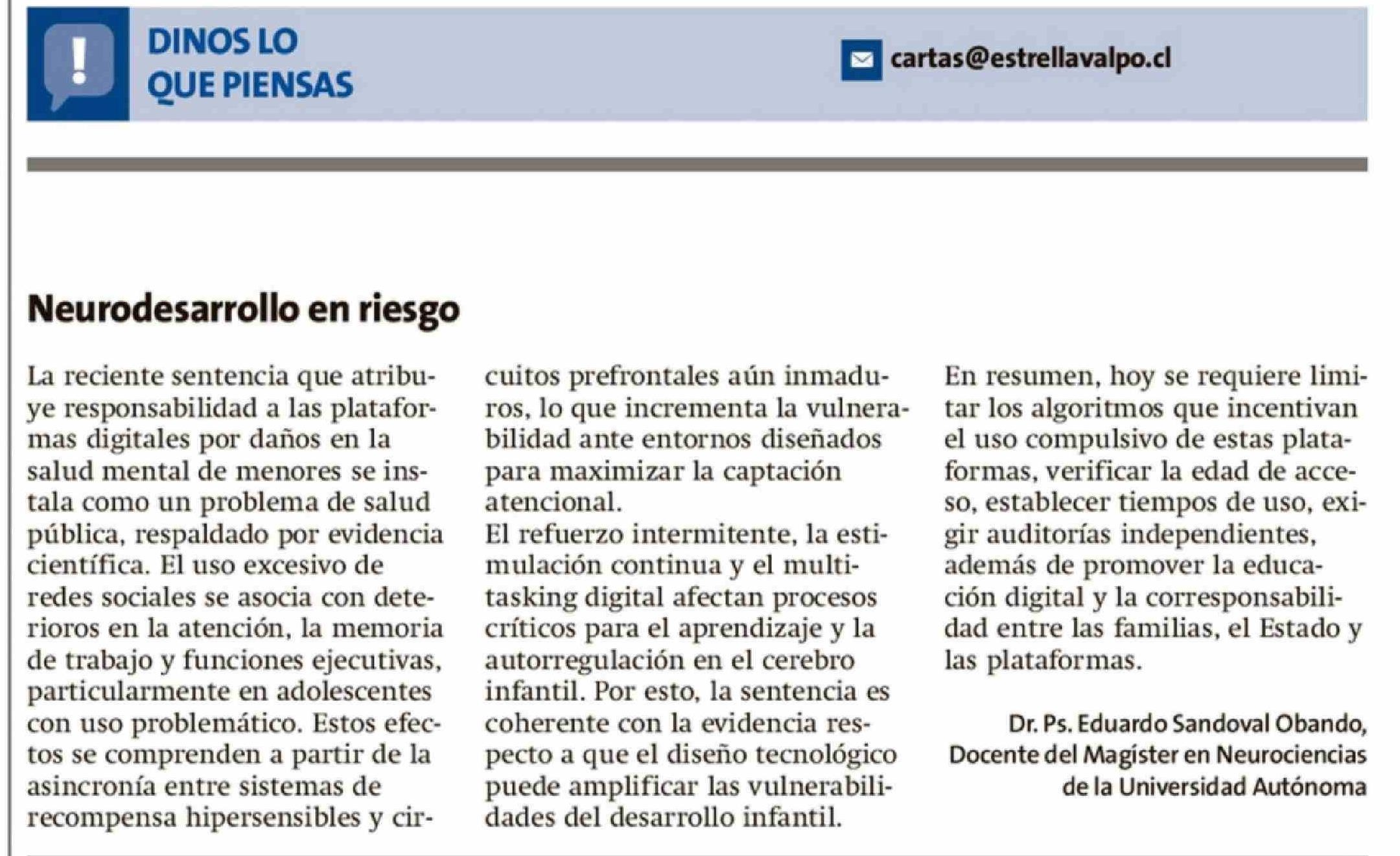 Título: Columnas de Opinión: Neurodesarrollo en riesgo