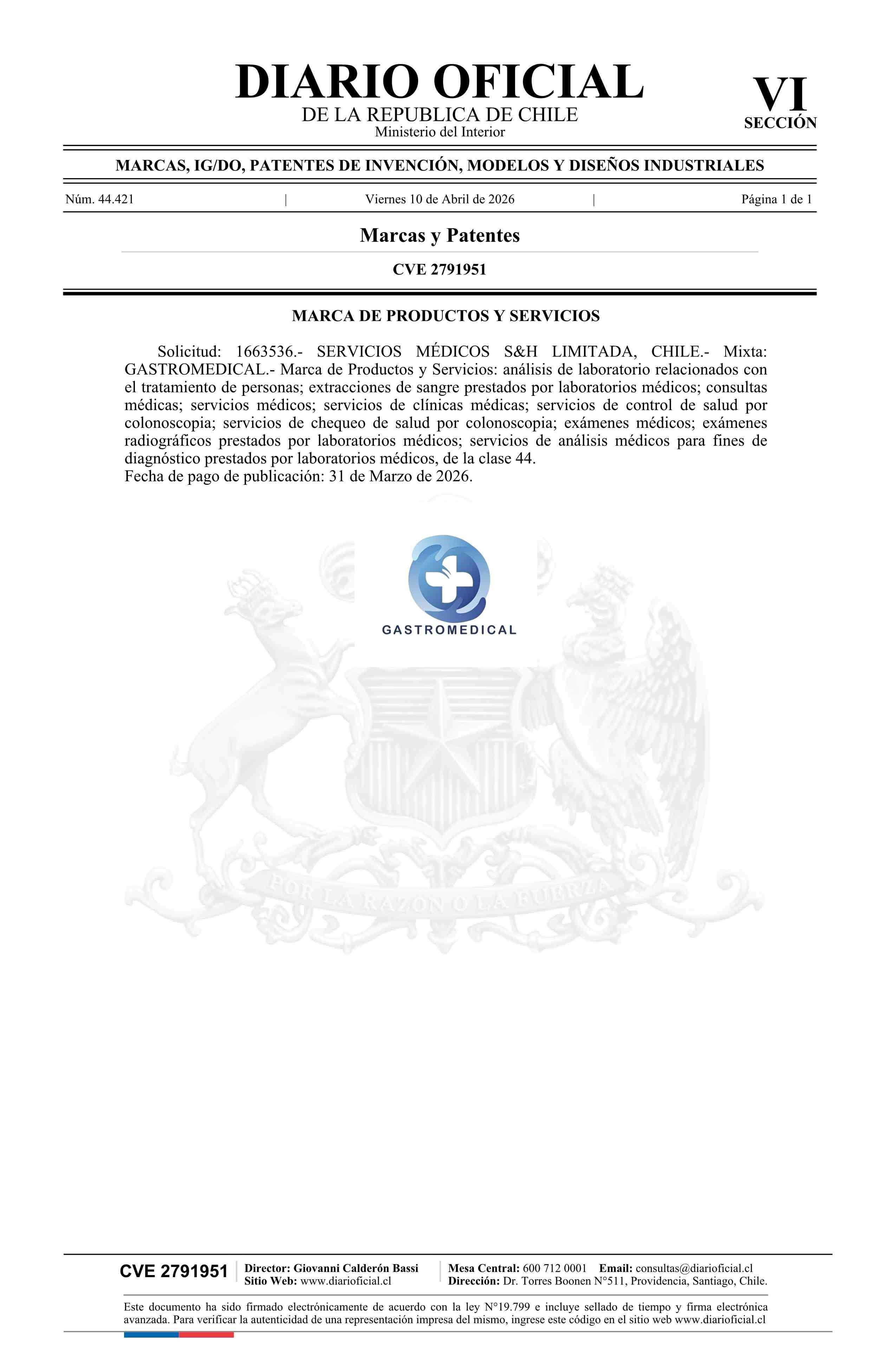 Diario Oficial Edición Electrónica (Diario Oficial de Chile - 6 Marcas Y Patentes)