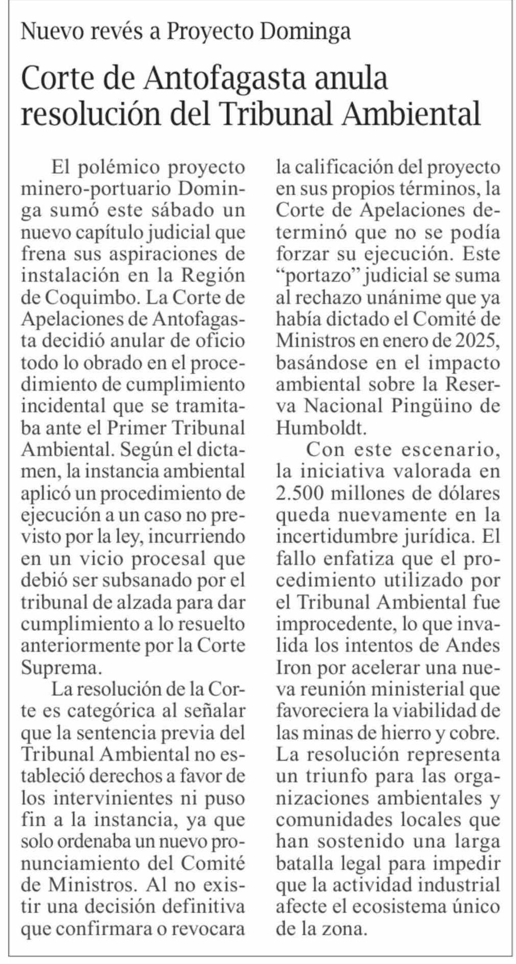Corte de Antofagasta anula resolución del Tribunal Ambiental
