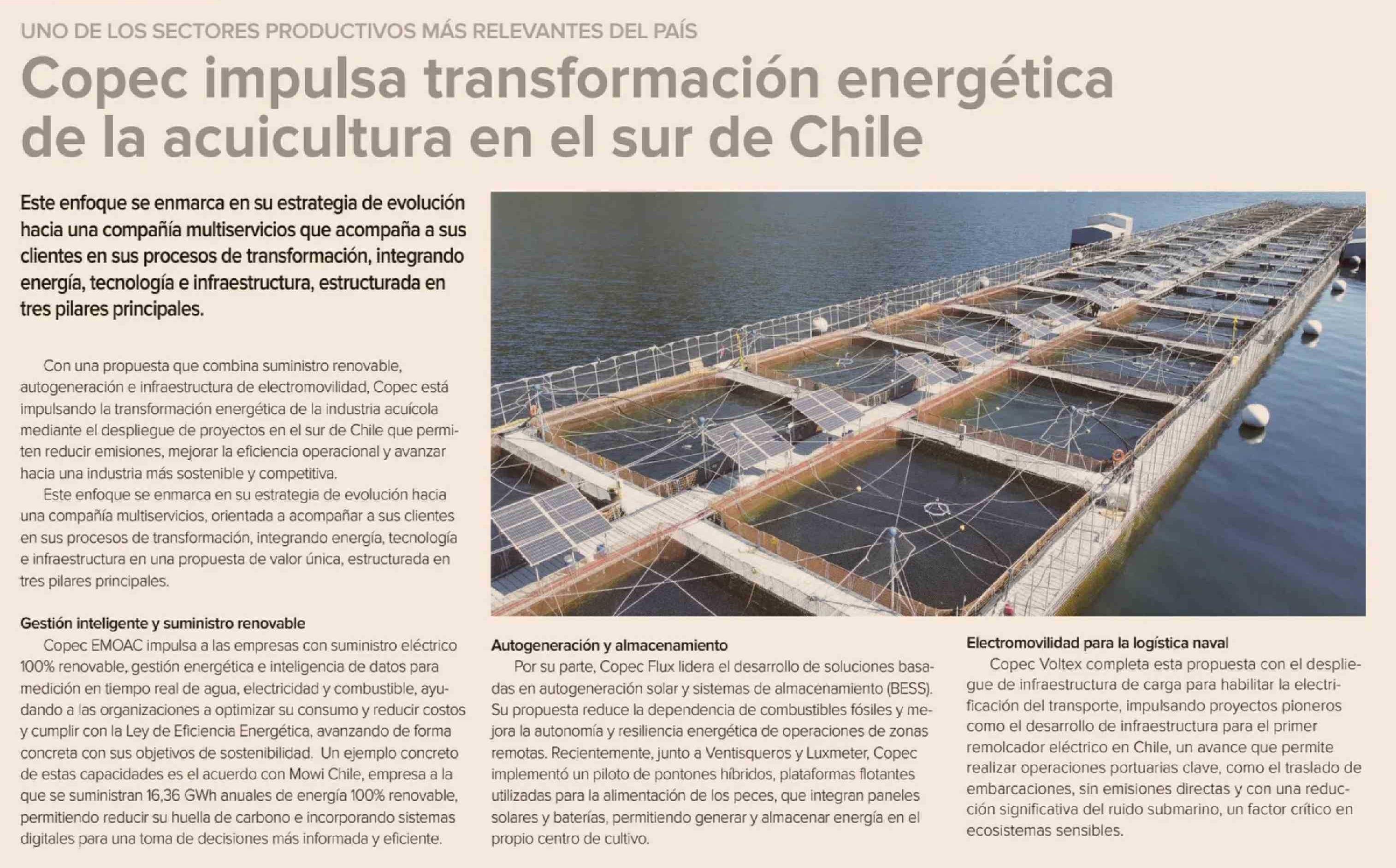 Copec impulsa transformación energética de la acuicultura en el sur de Chile