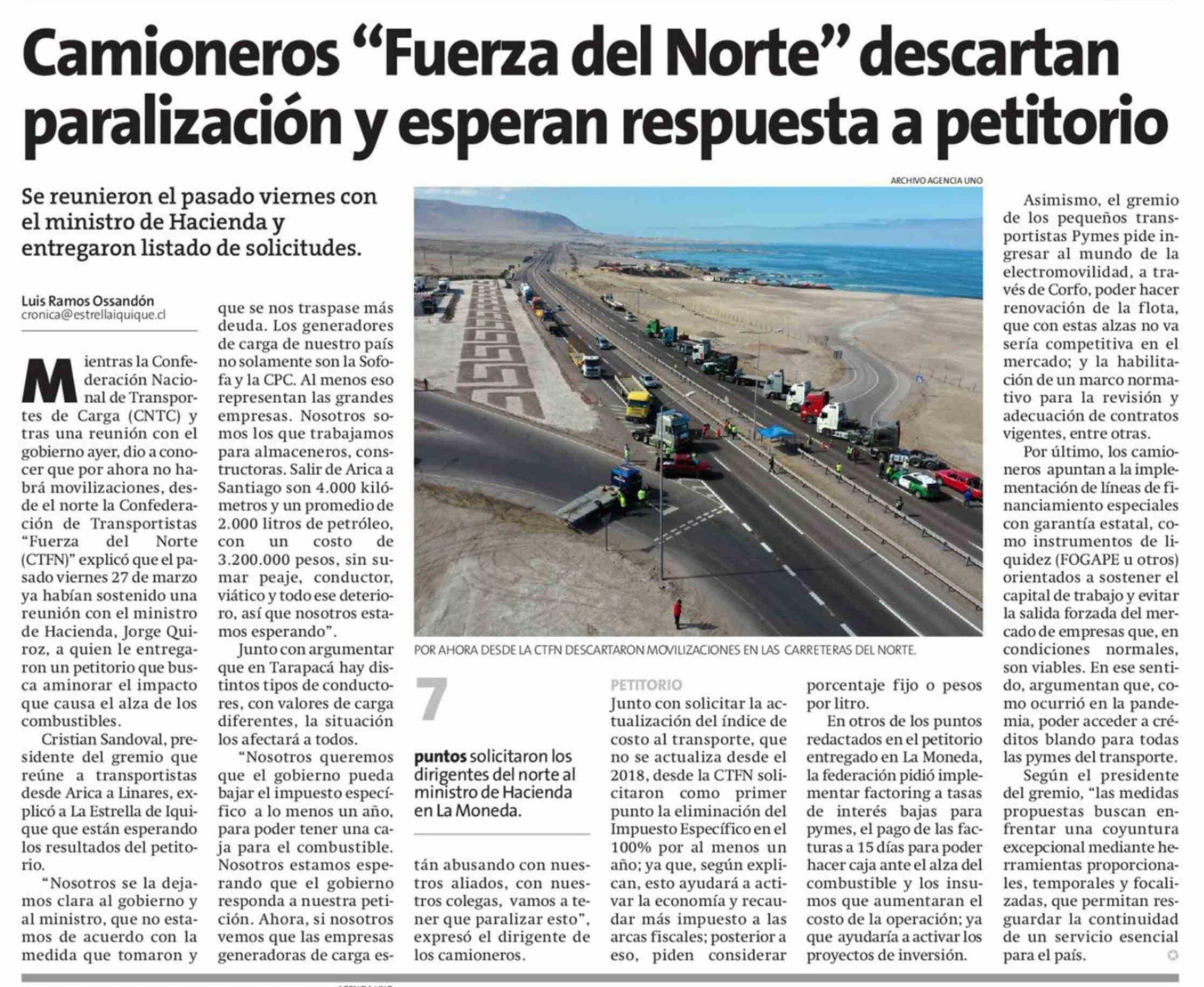 Camioneros "Fuerza del Norte" descartan paralización y esperan respuesta a petitorio