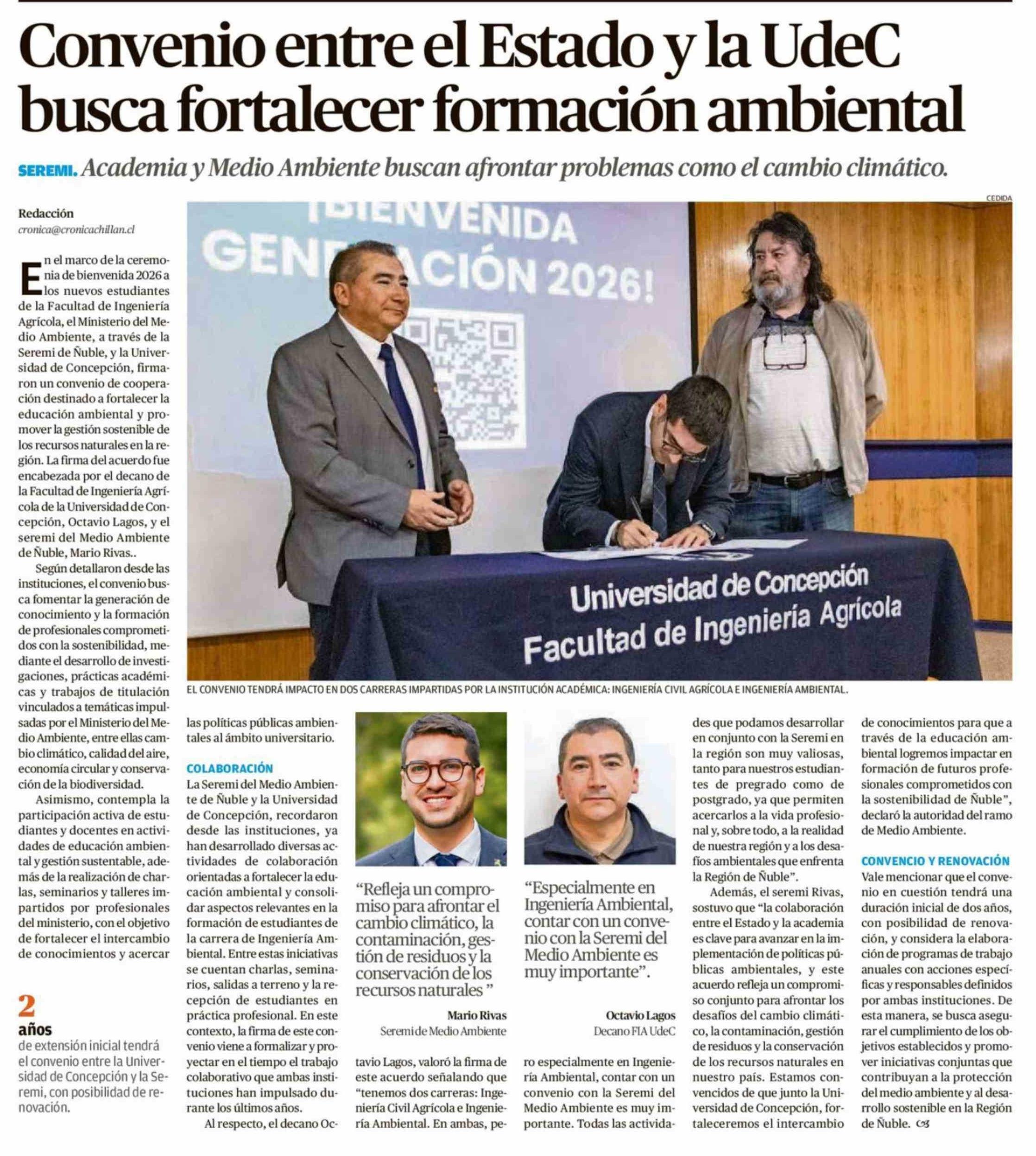 Convenio entre el Estado y la UdeC busca fortalecer formación ambiental