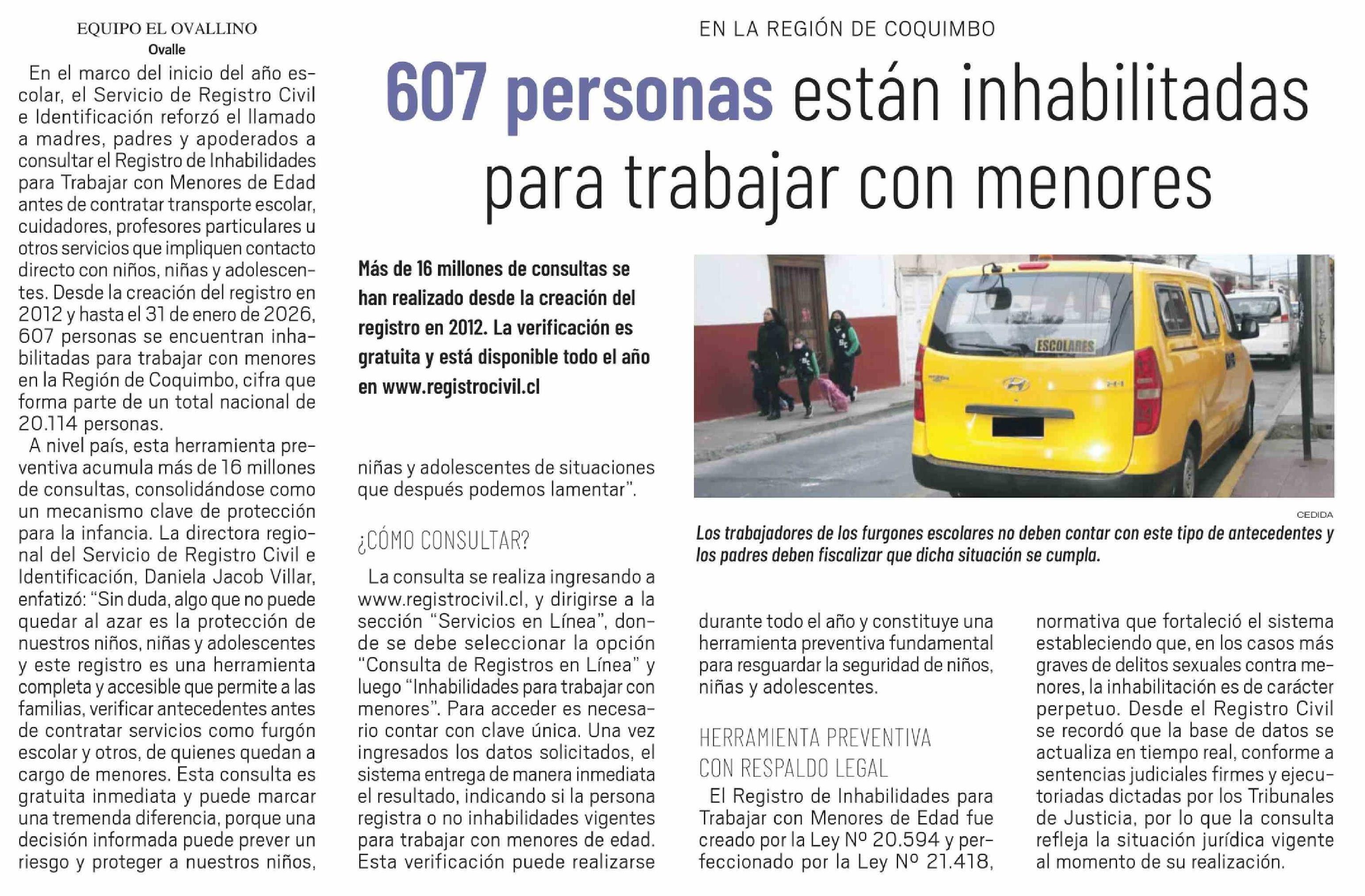 607 Personas están inhabilitadas para trabajar con menores