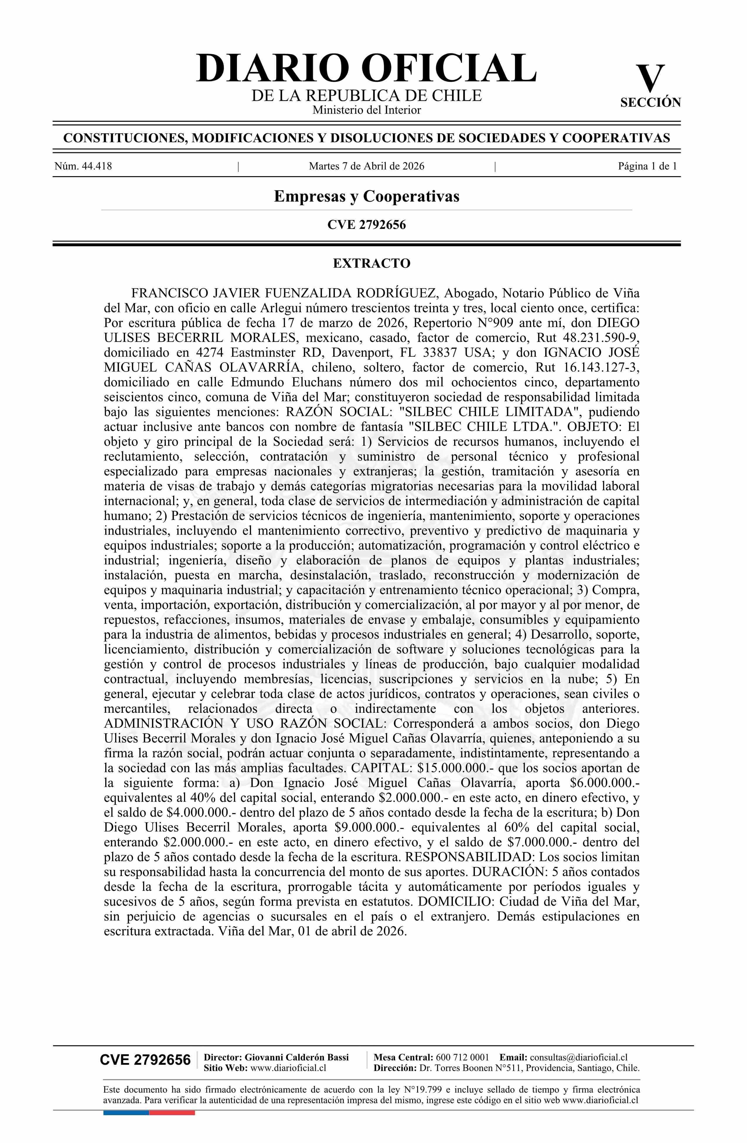 Diario Oficial Edición Electrónica (Diario Oficial de Chile - 5 Empresas Y Cooper)
