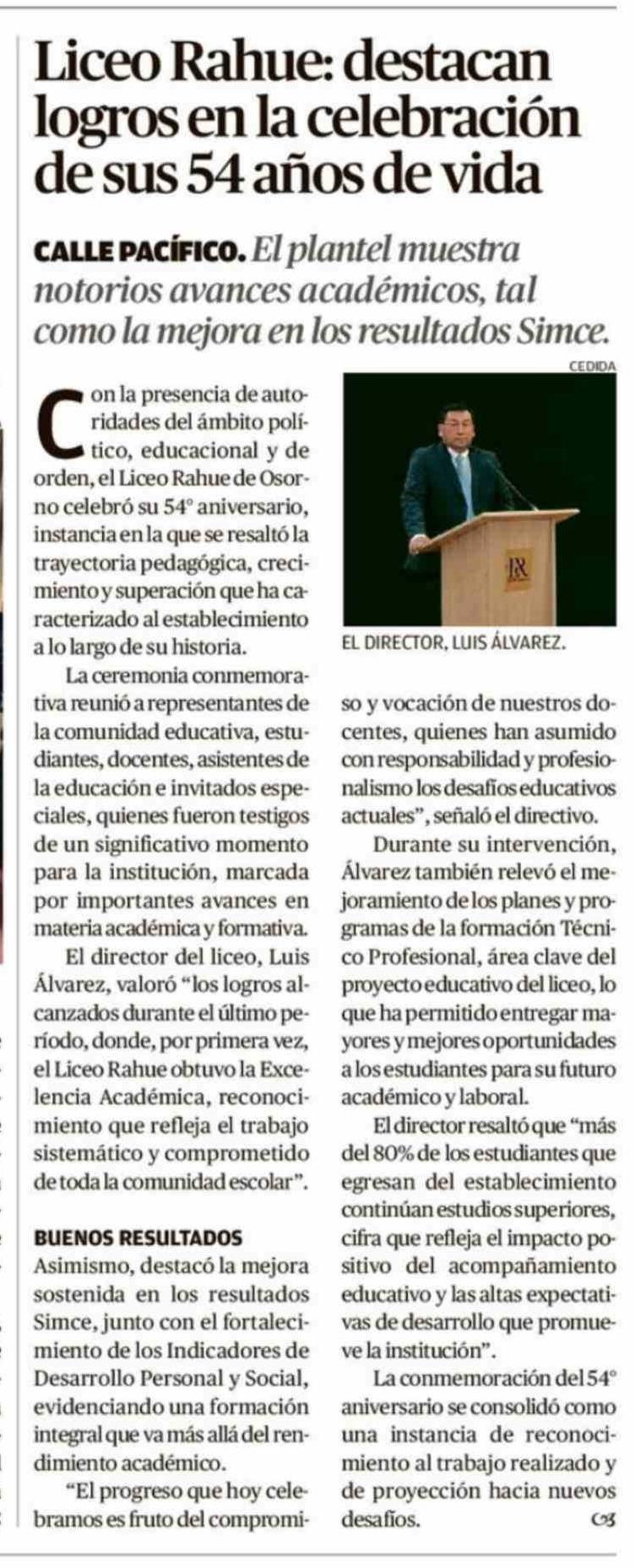 Liceo Rahue: destacan logros en la celebración de sus 54 años de vida