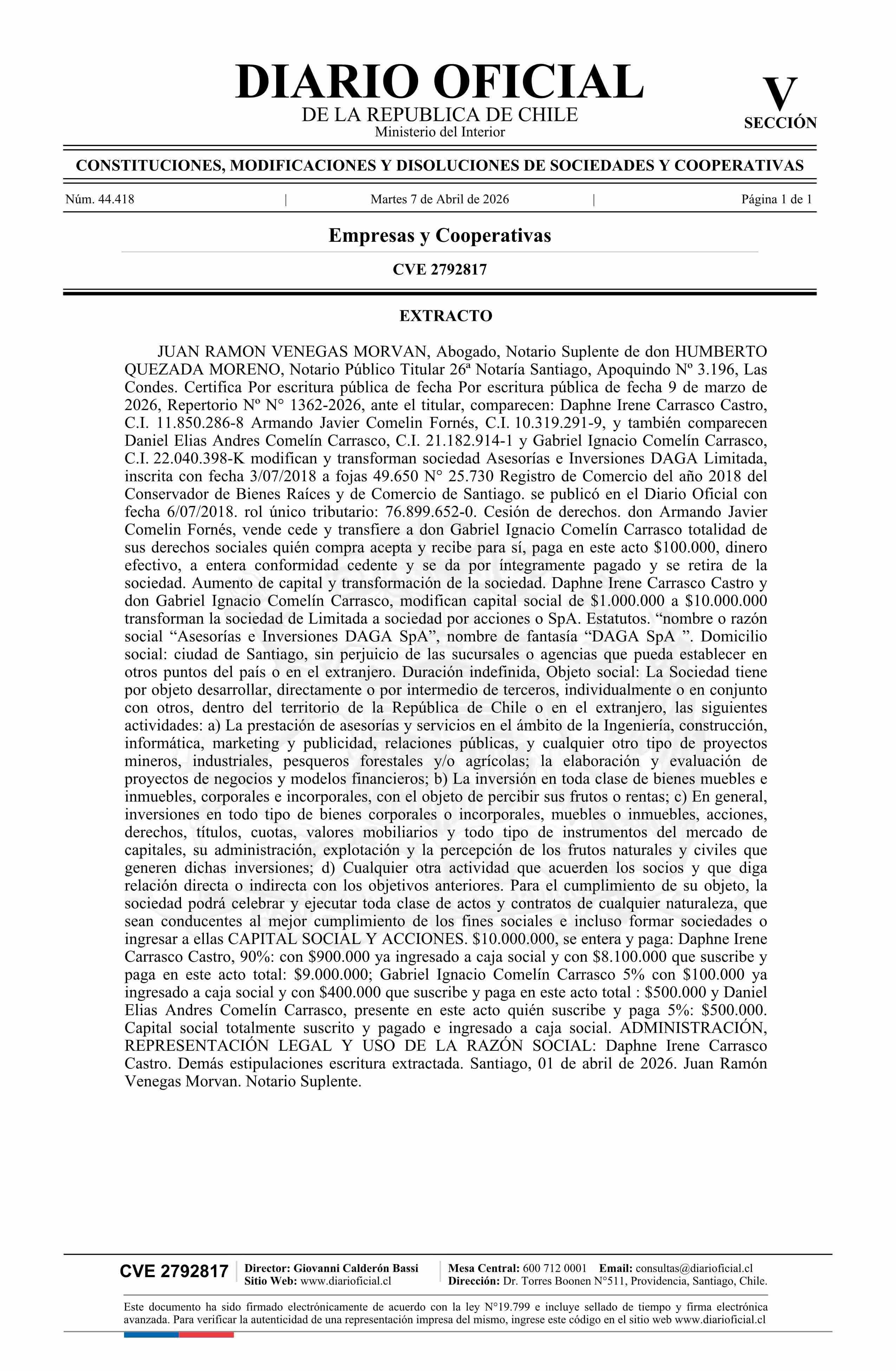 Asesorías e Inversiones DAGA Limitada 76.899.652-0