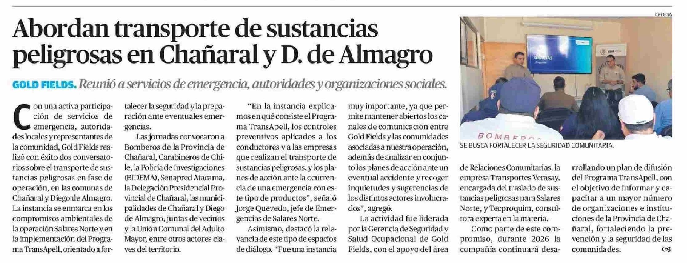 Abordan transporte de sustancias peligrosas en Chañaral y D. de Almagro