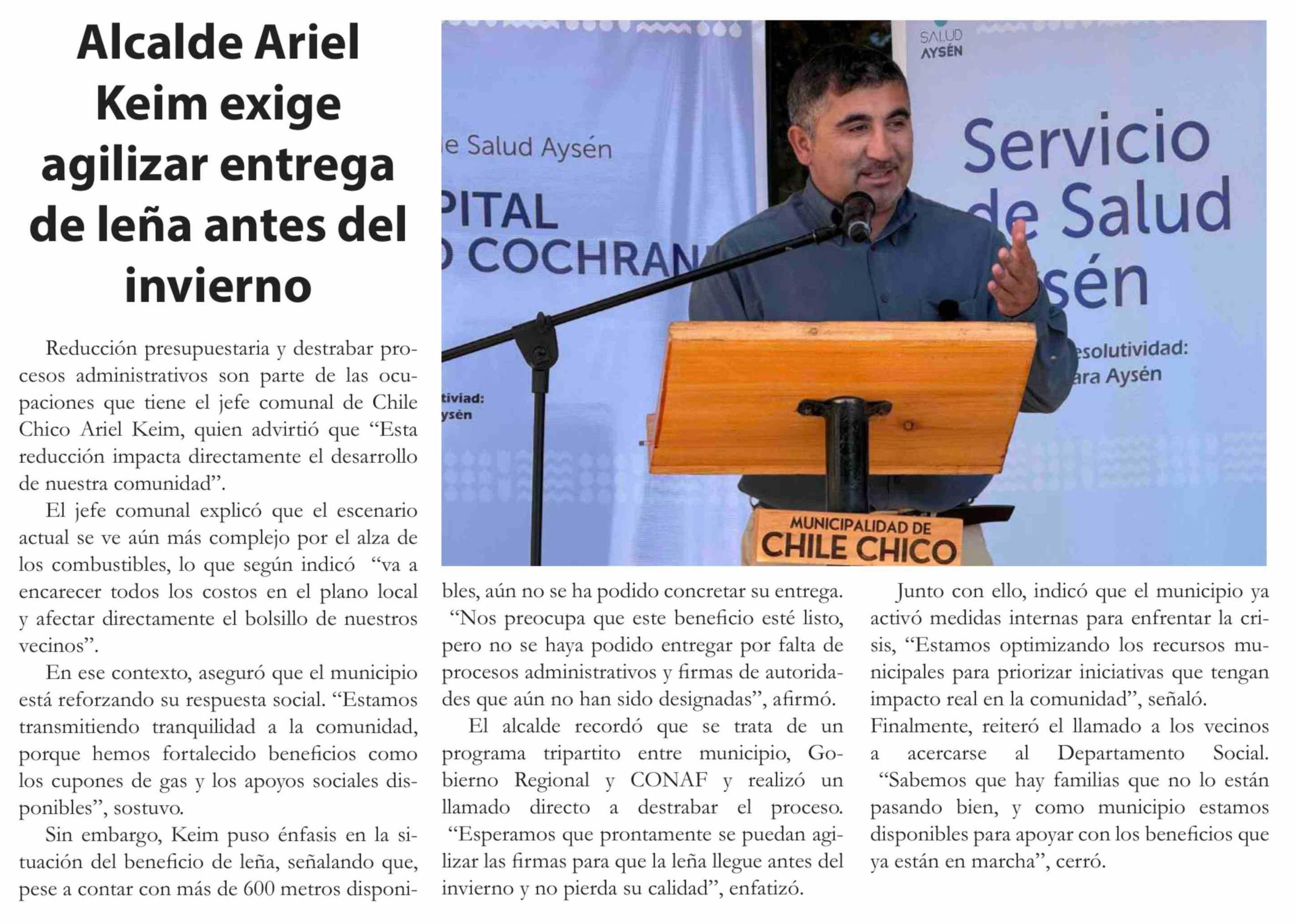 Título: Alcalde Ariel Keim exige agilizar entrega de leña antes del invierno