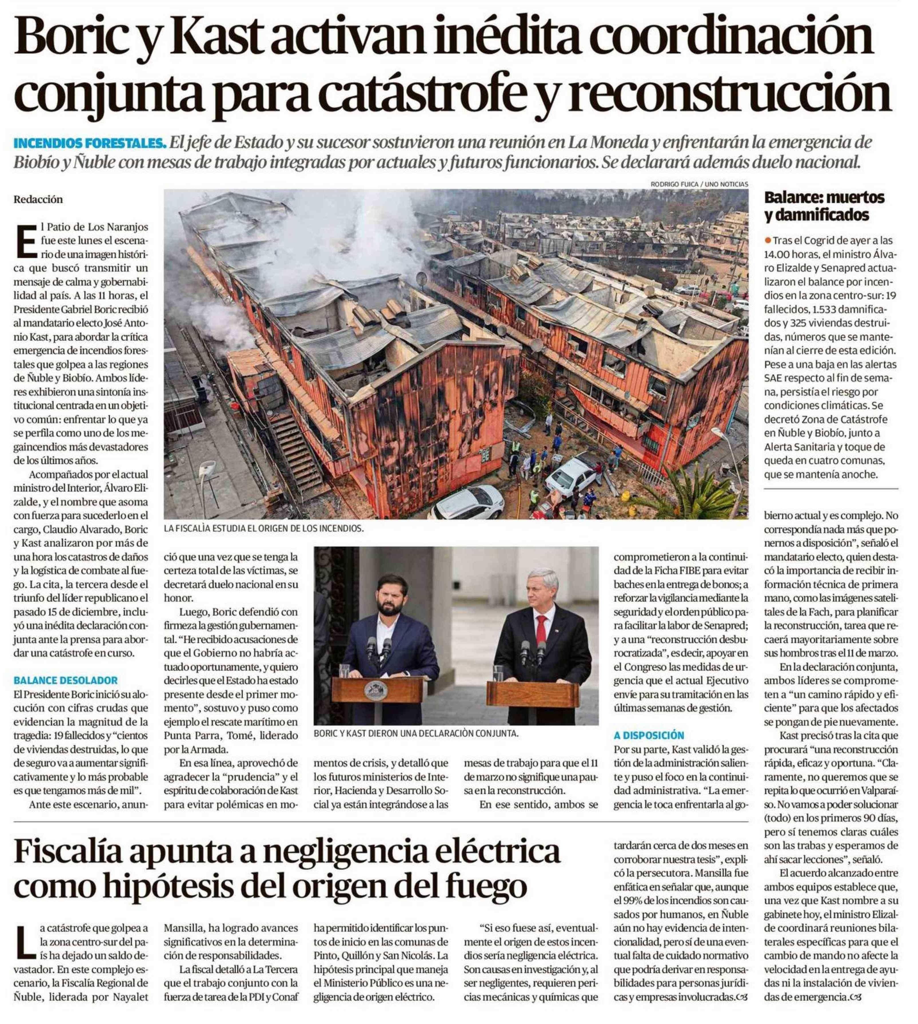 Boric y Kast activan inédita coordinación conjunta para catástrofe y reconstrucción