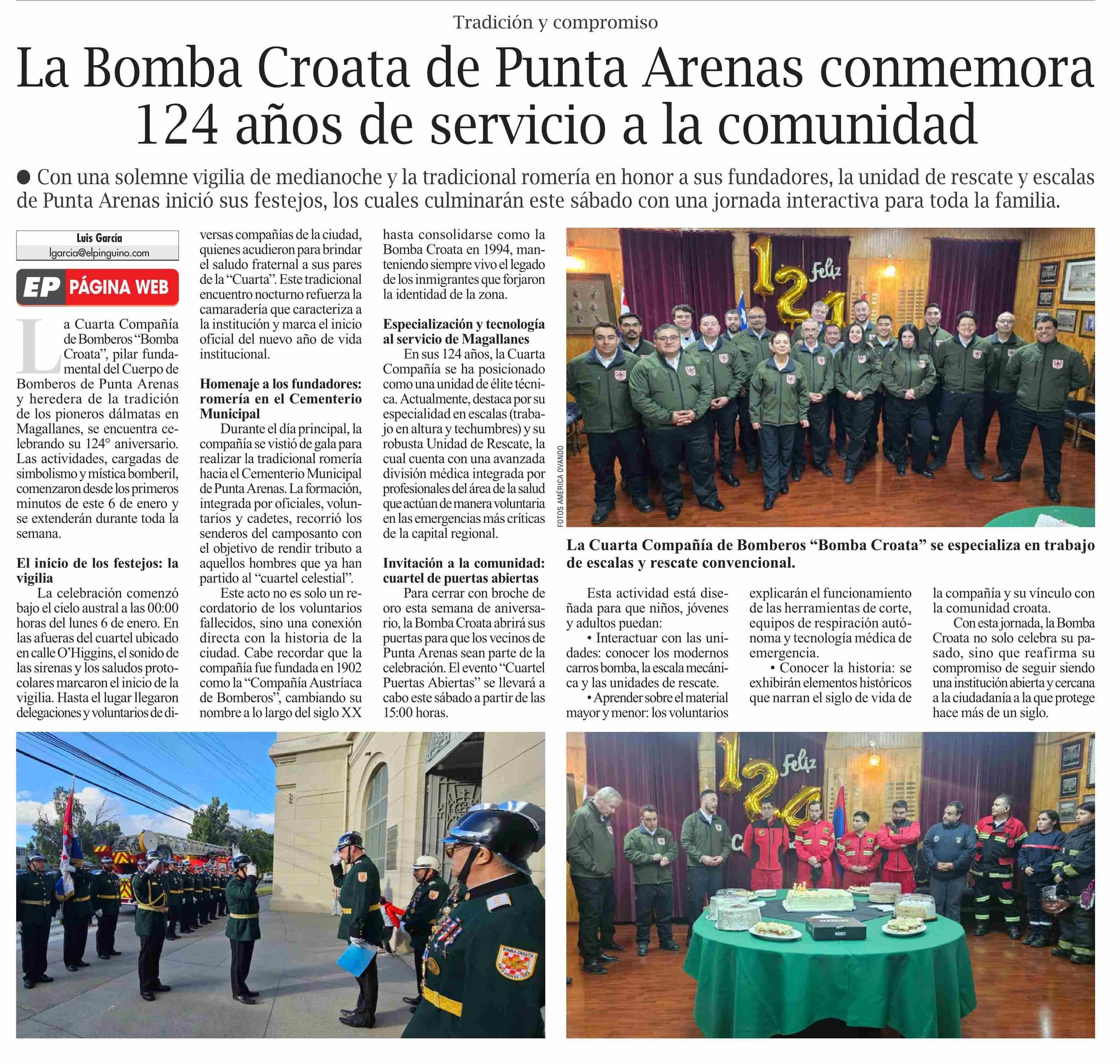 La Bomba Croata de Punta Arenas conmemora 124 años de servicio a la comunidad