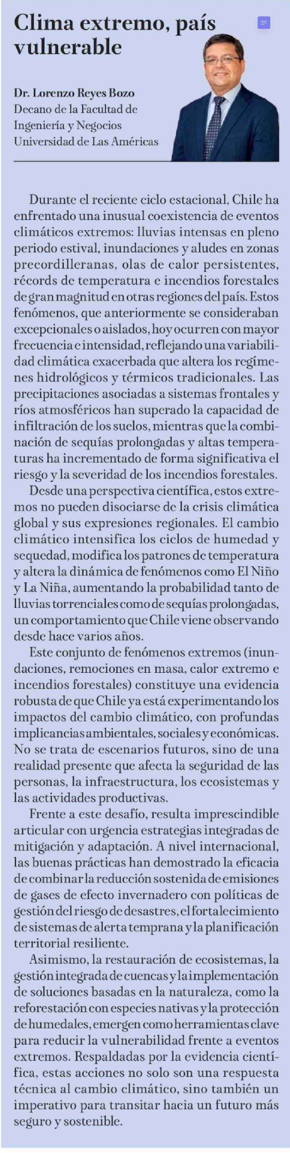 Columnas de Opinión: Clima extremo, país vulnerable