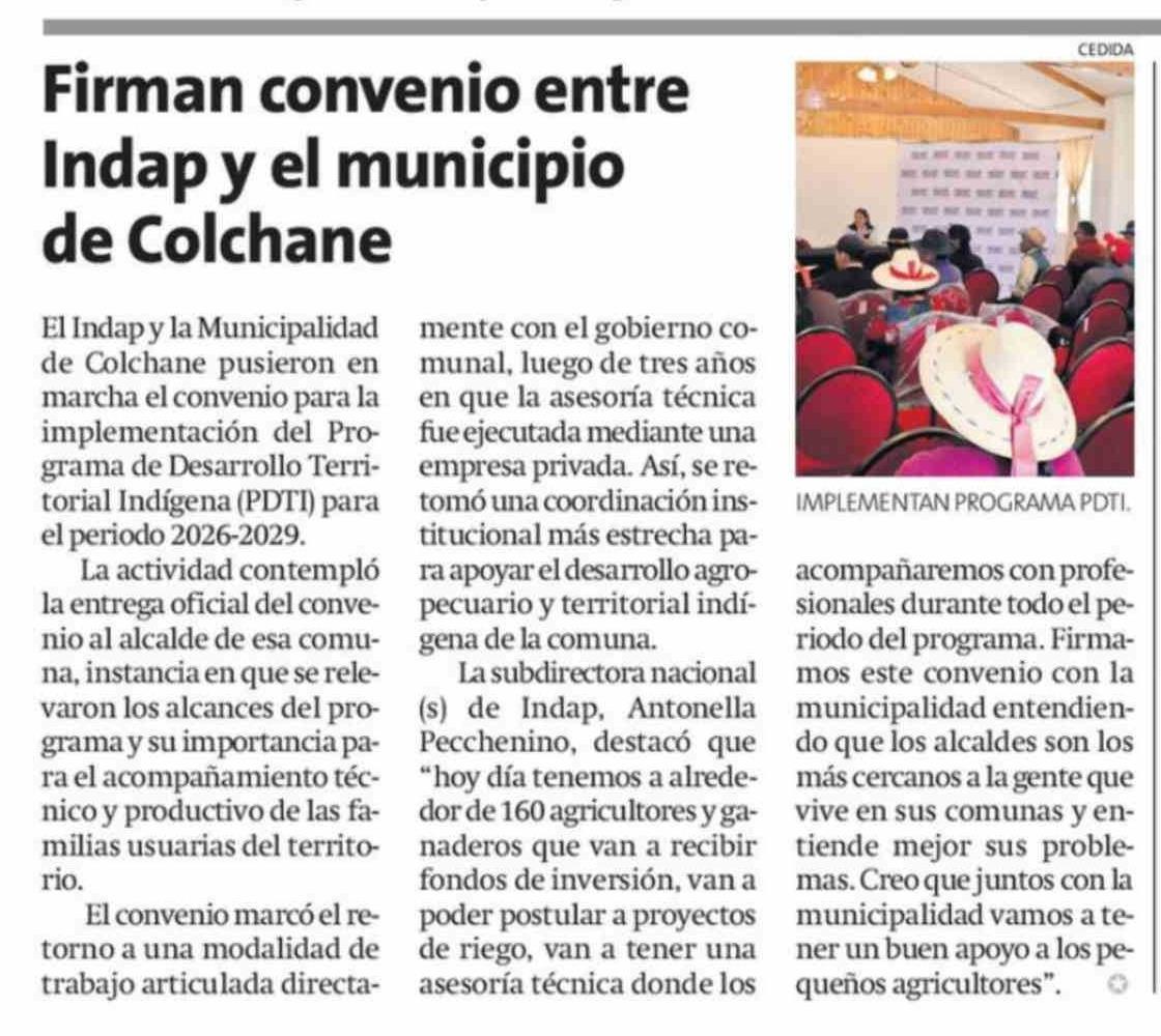 Firman convenio entre Indap y el municipio de Colchane