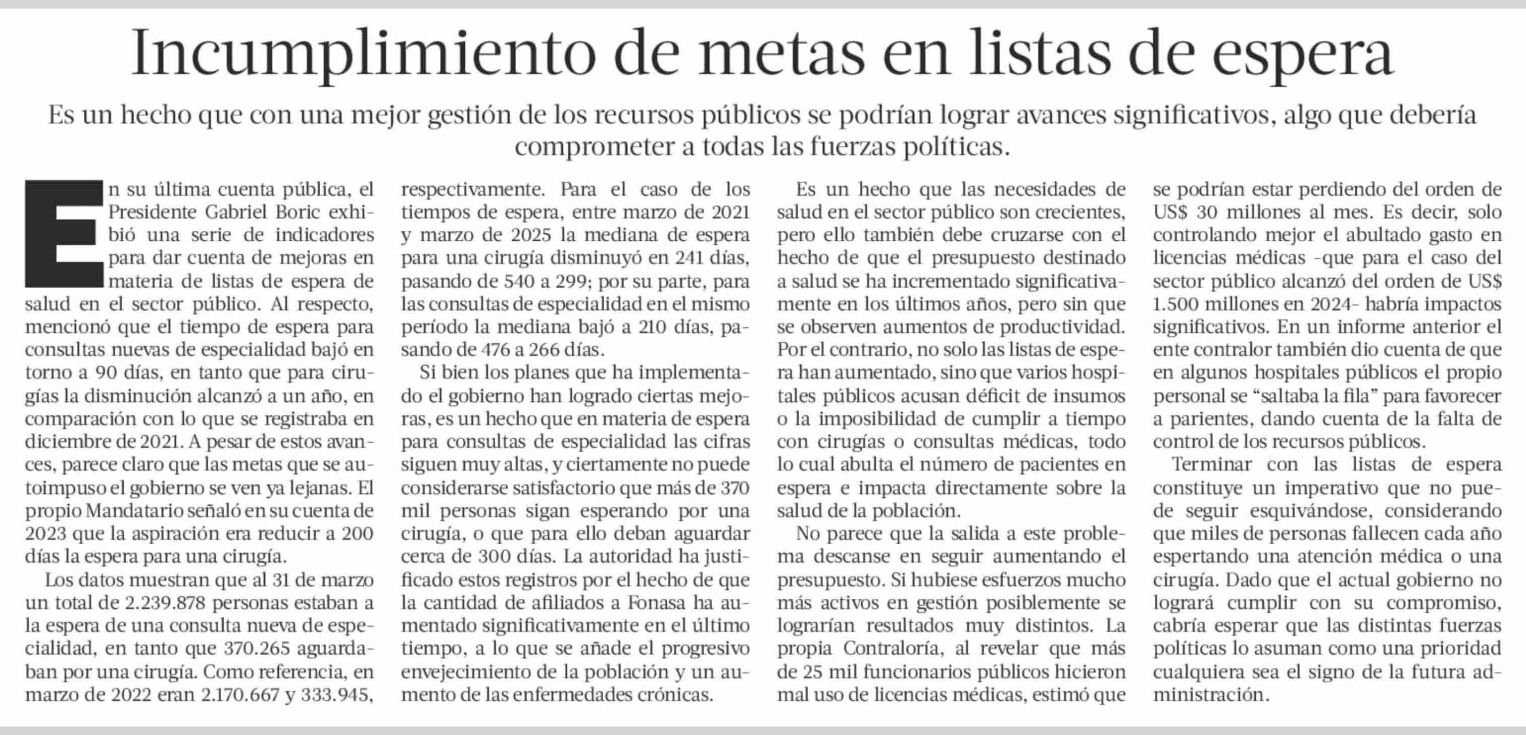 EDITORIAL: Incumplimiento de metas en listas de espera