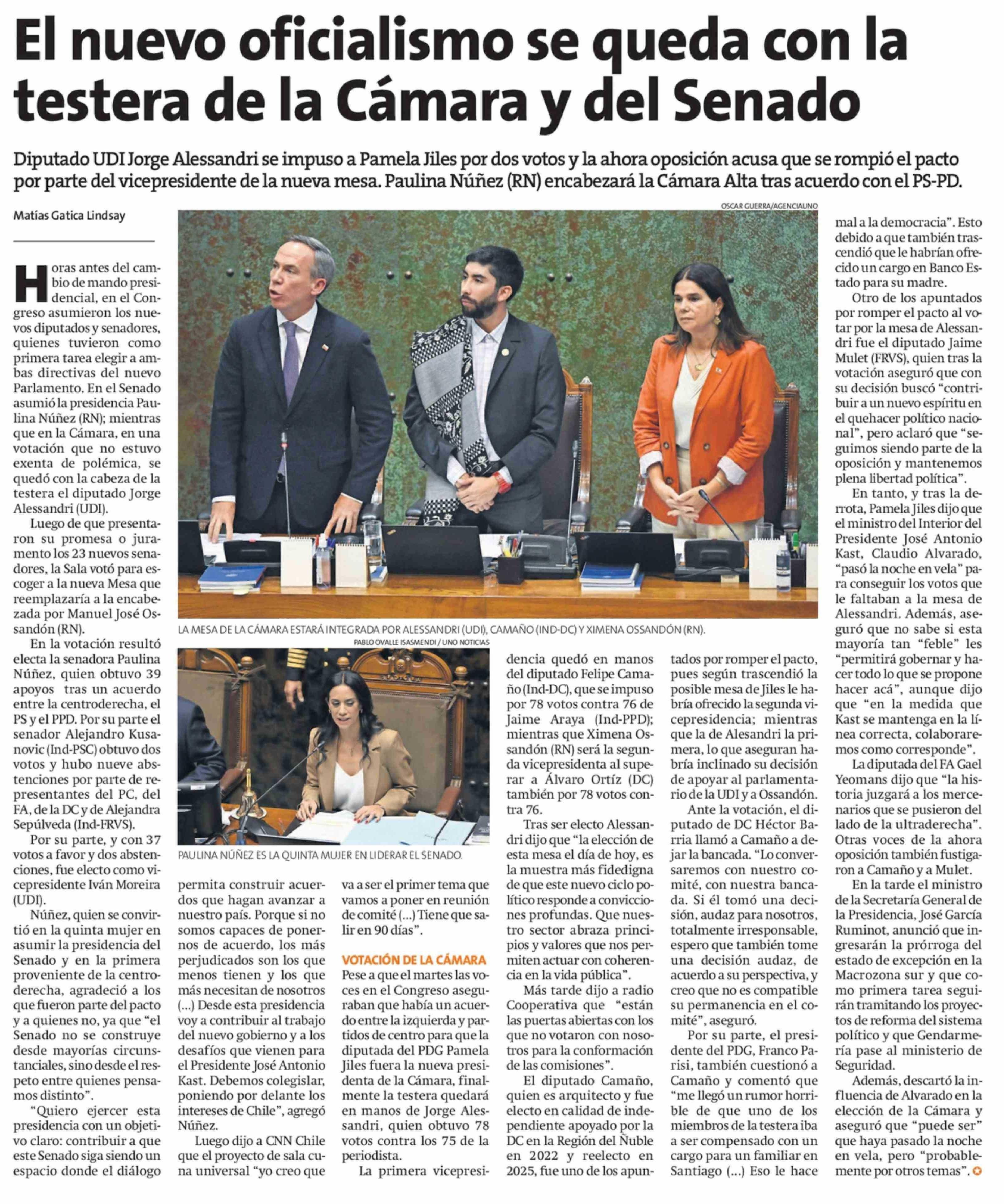 El nuevo oficialismo se queda con la testera de la Cámara y del Senado
