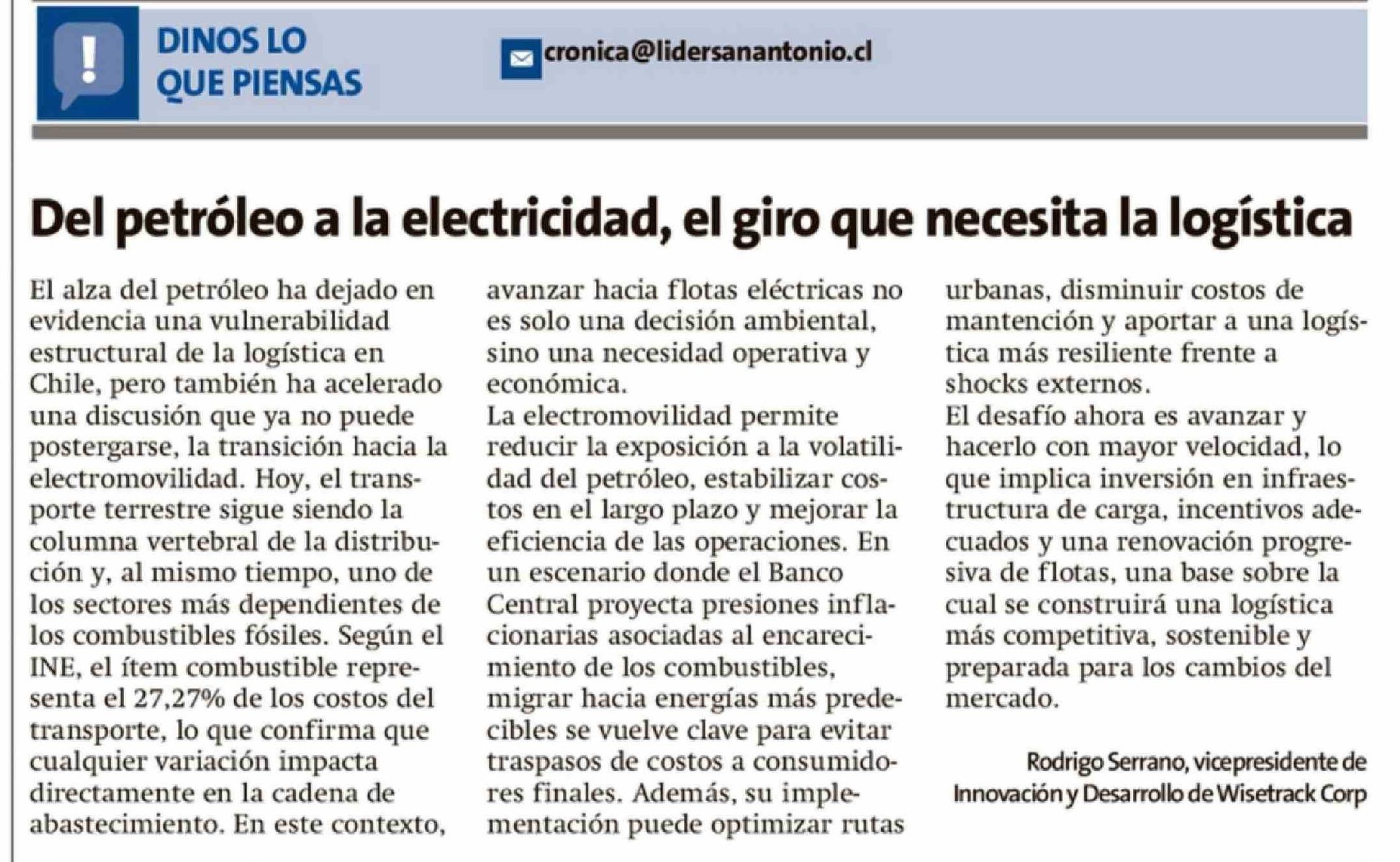 Columnas de Opinión: Del petróleo a la electricidad, el giro que necesita la logística