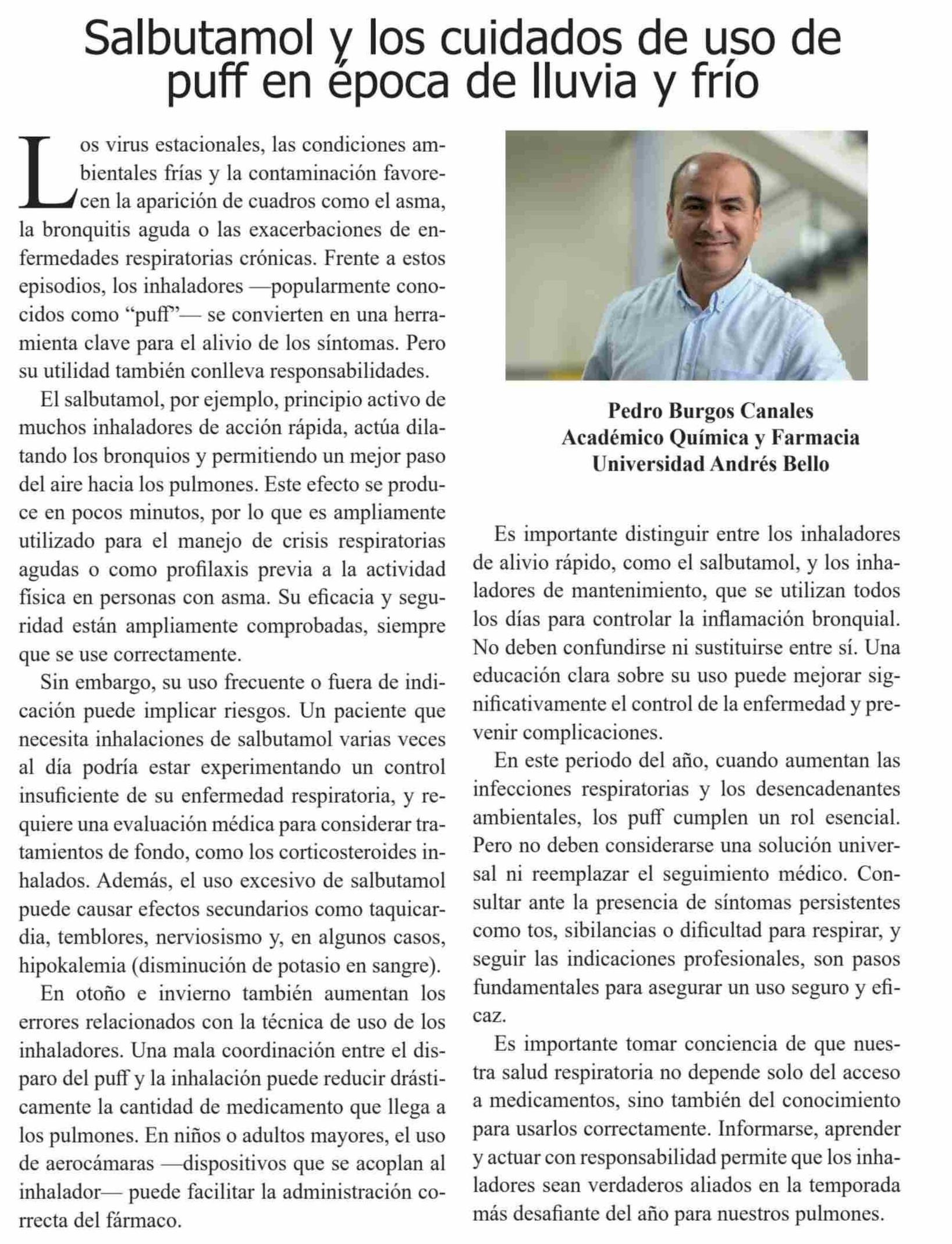 Salbutamol y los cuidados de uso de puff en época de lluvia y frio