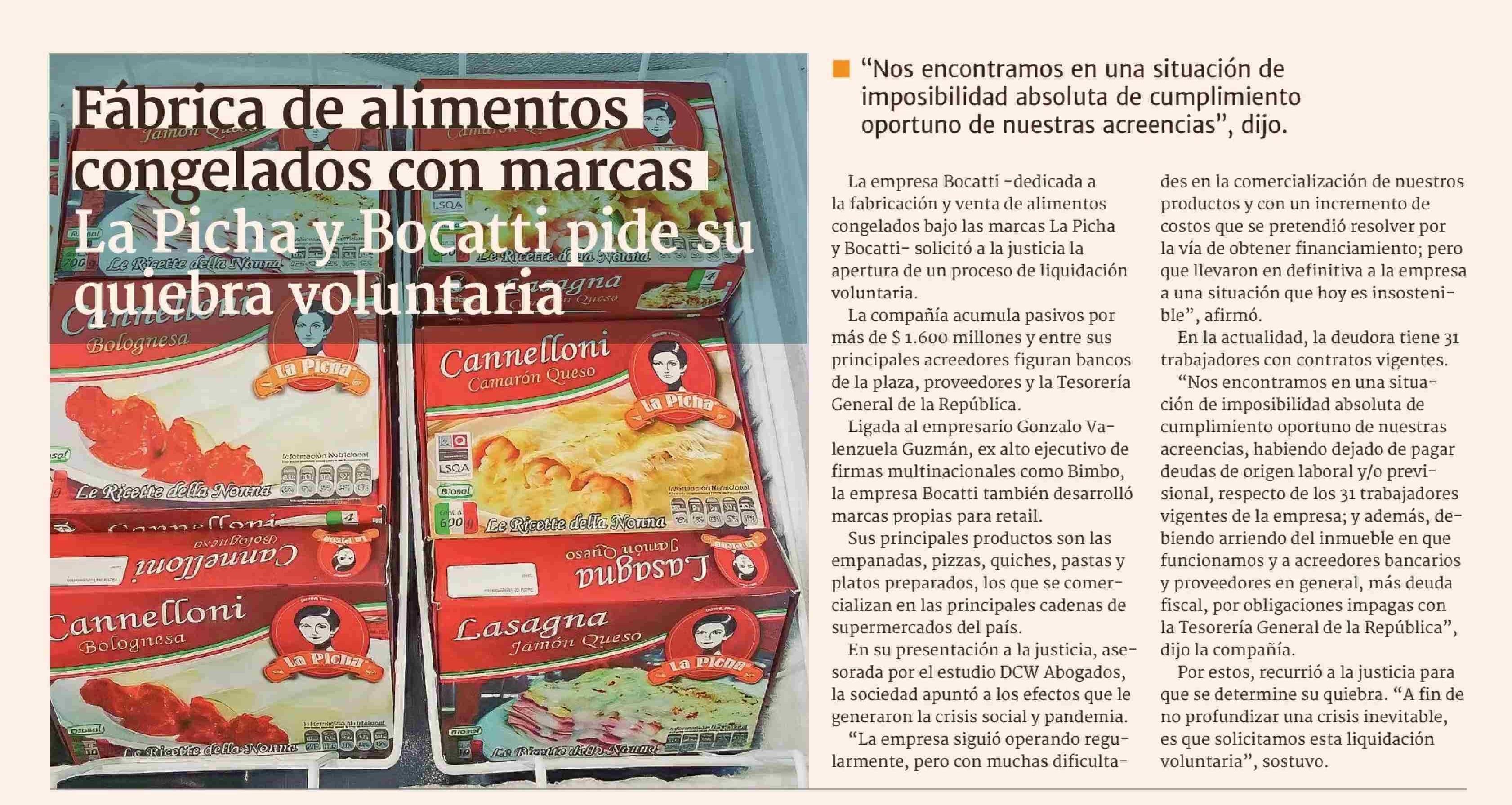 Fábrica de alimentos congelados con marcas La Picha y Bocatti pide su quiebra voluntaria