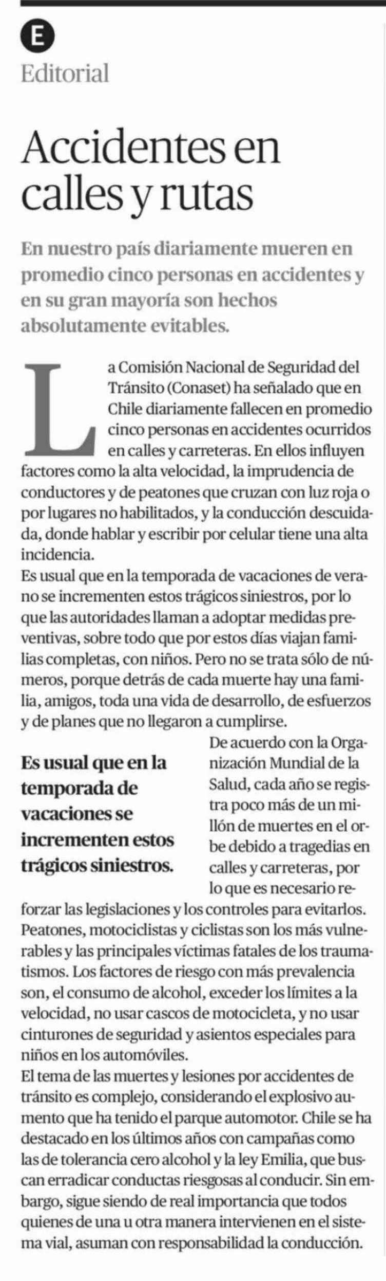 Editorial: Accidentes en calles y rutas