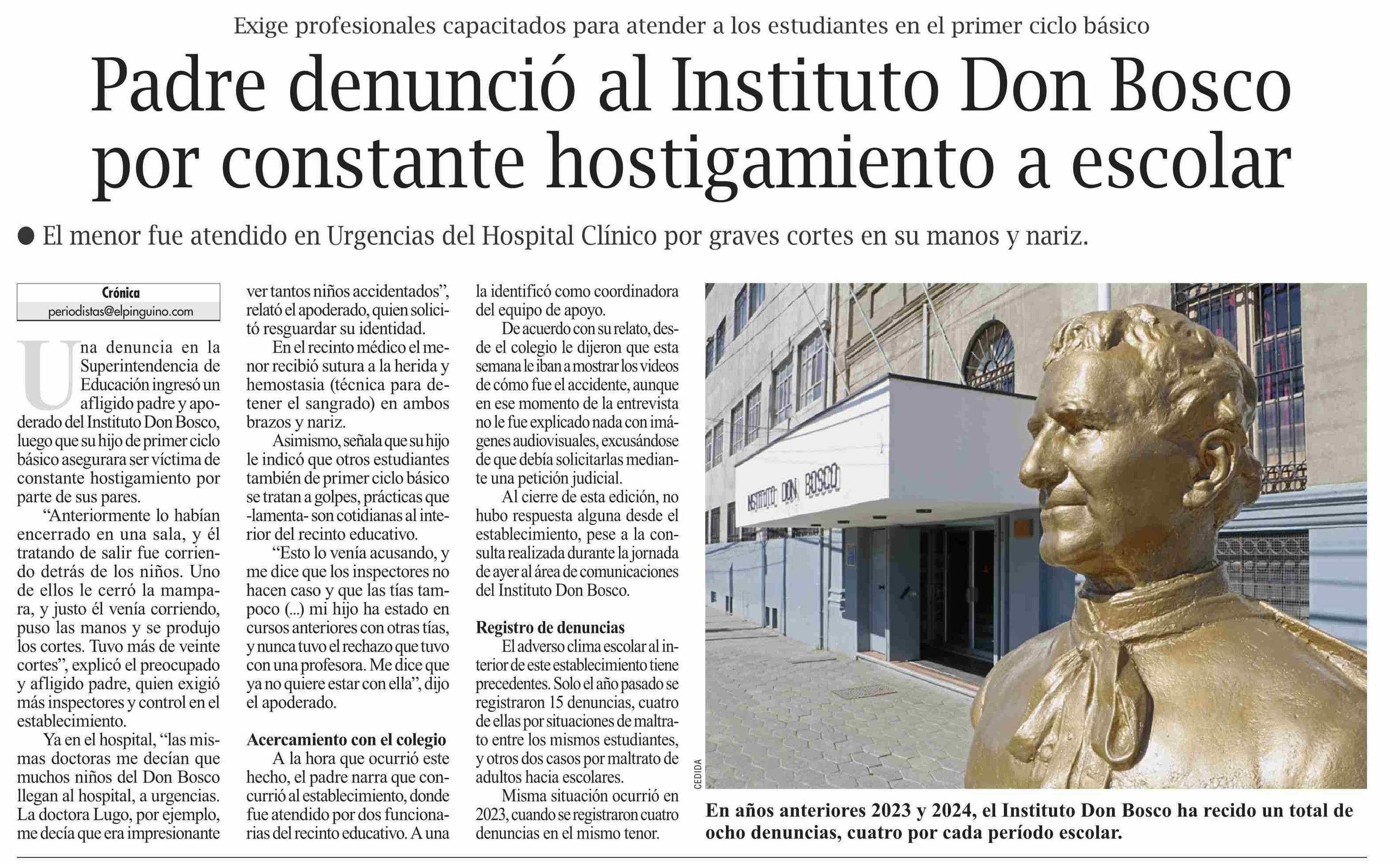 Padre denunció al Instituto Don Bosco por constante hostigamiento a escolar