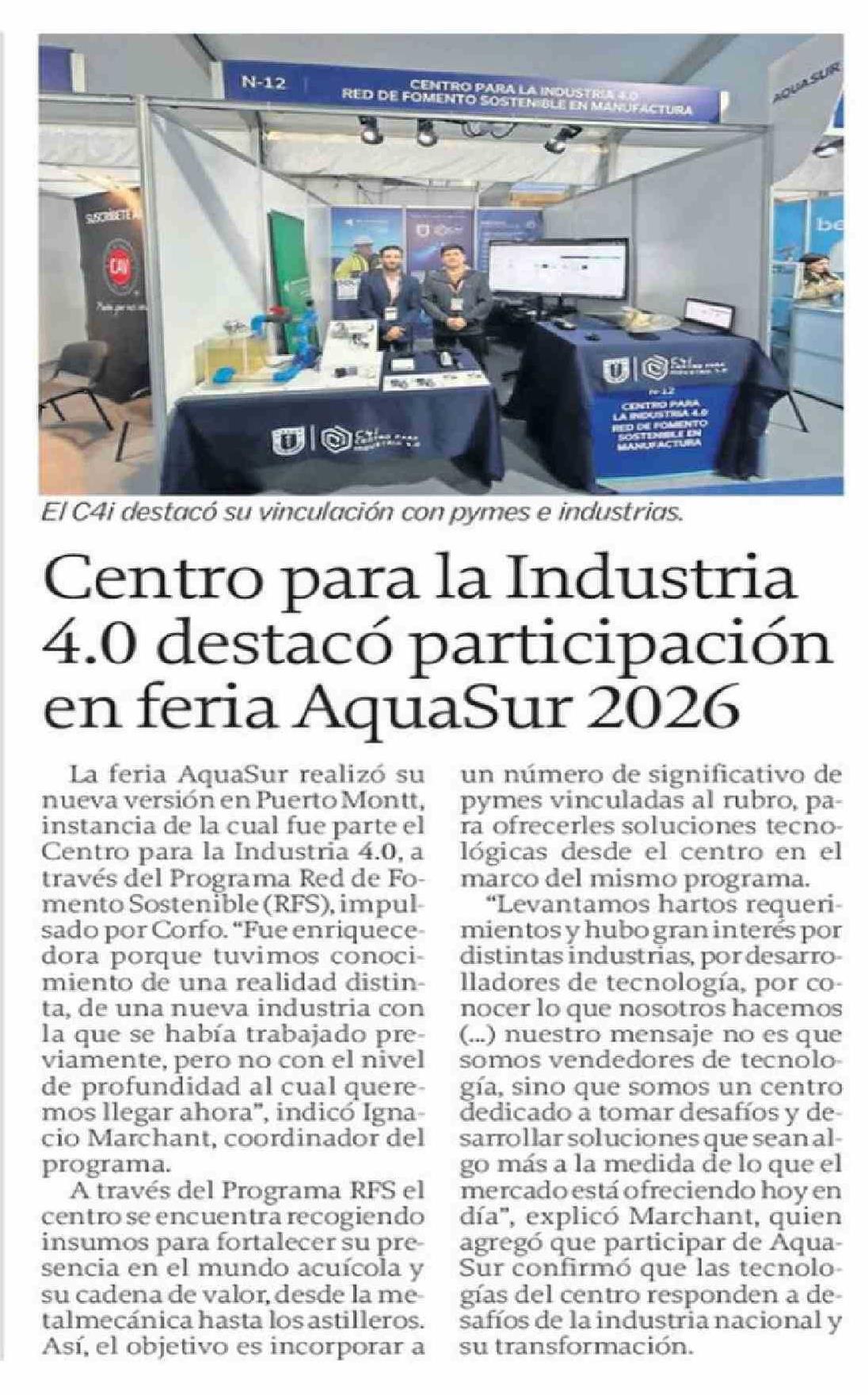 Centro para la Industria 4.0 destacó participación en feria AquaSur 2026