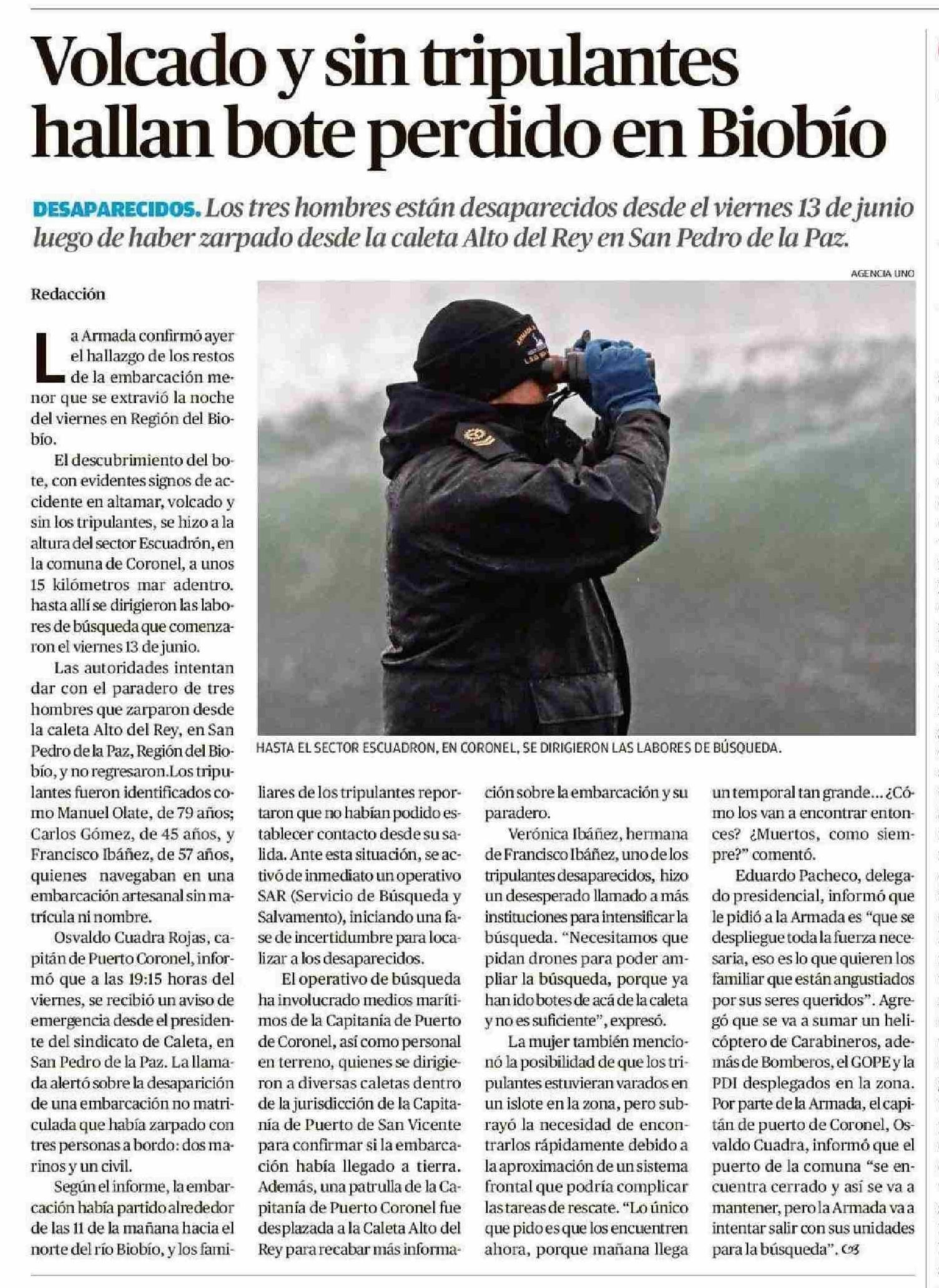 Volcado y sin tripulantes hallan bote perdido en Biobío