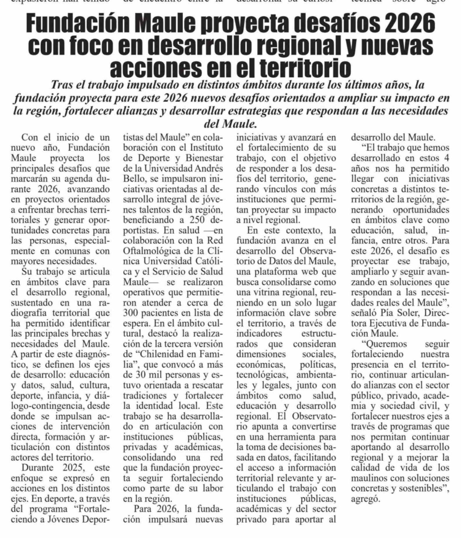 Fundación Maule proyecta desafíos 2026 con foco en desarrollo regional y nuevas acciones en el territorio