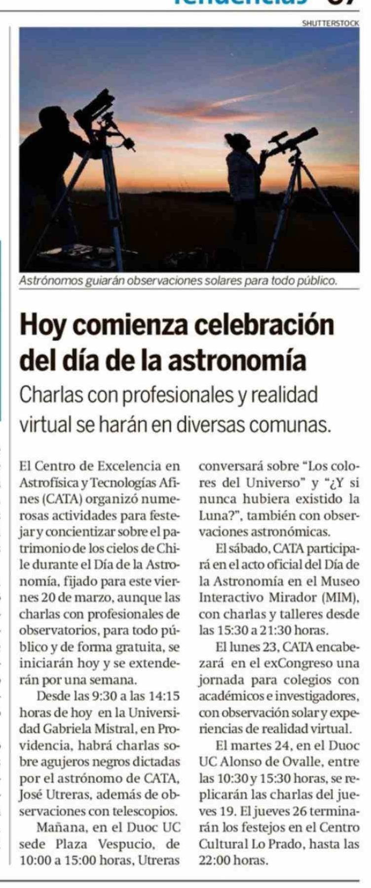 Título: Hoy comienza celebración del día de la astronomía