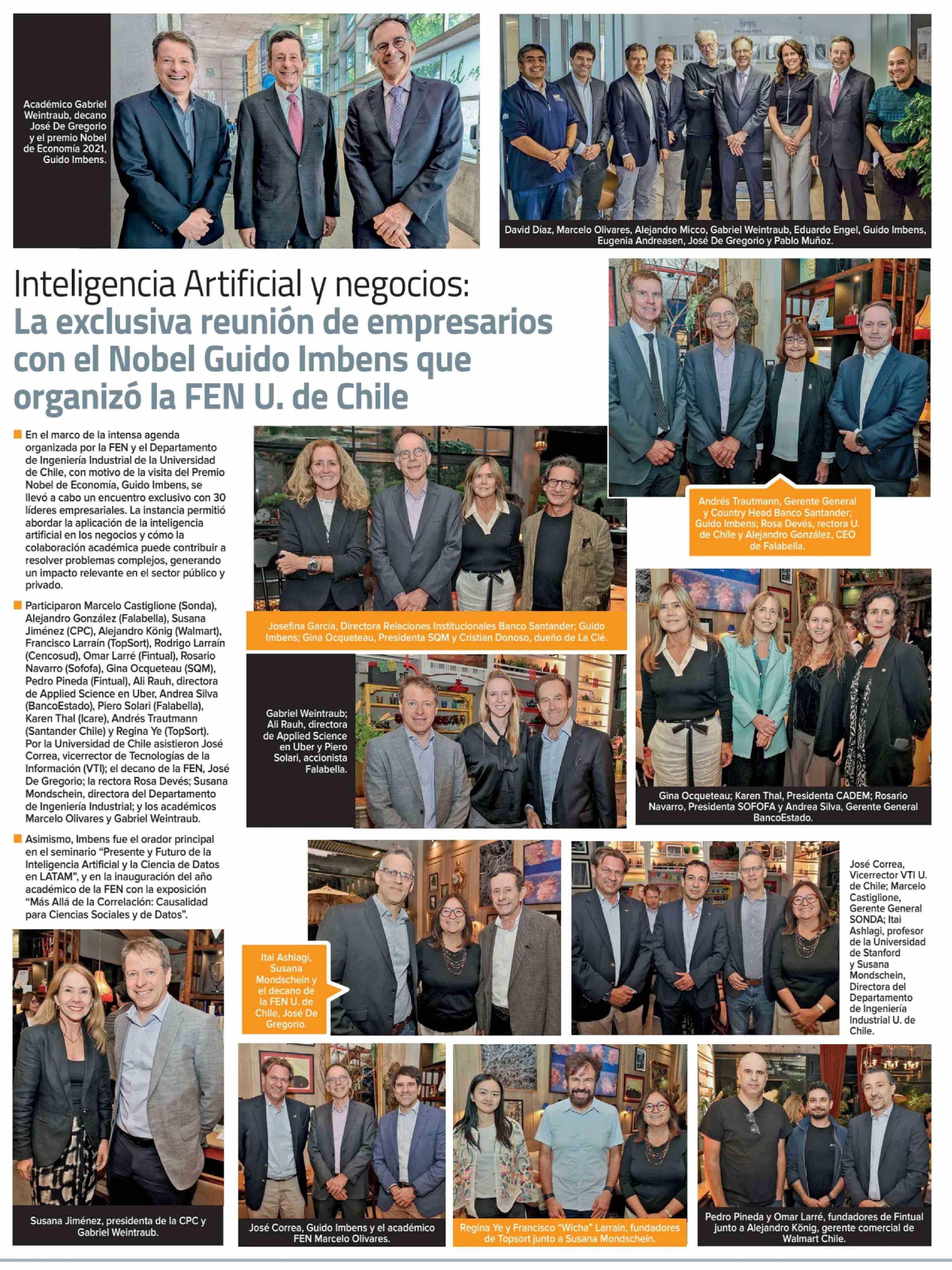 | Título: | Inteligencia Artificial y negocios: La exclusiva reunión de empresarios con el Nobel Guido Imbens que organizó la FEN U. de Chile |