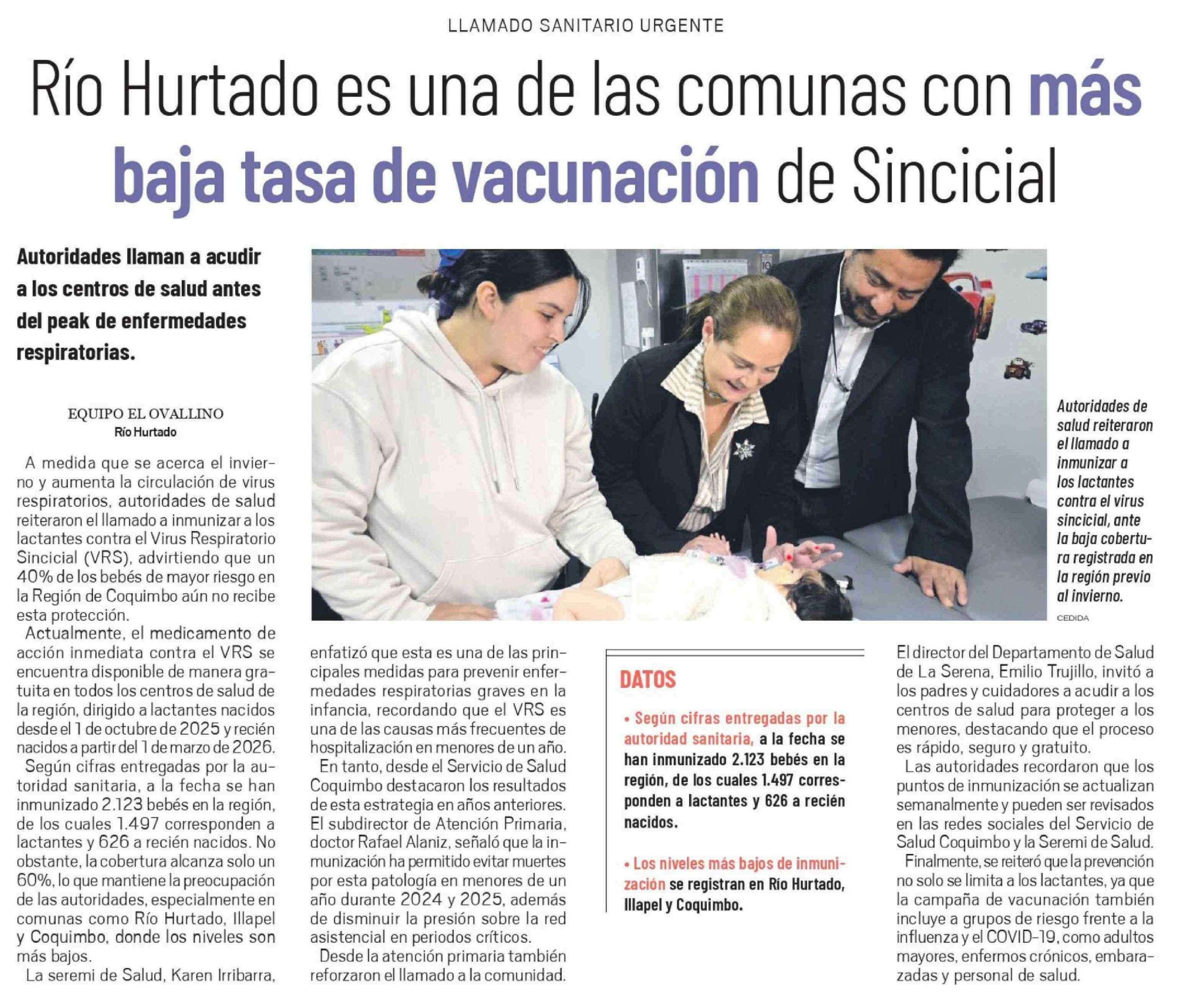 Río Hurtado es una de las comunas con más baja tasa de vacunación de Sincicial