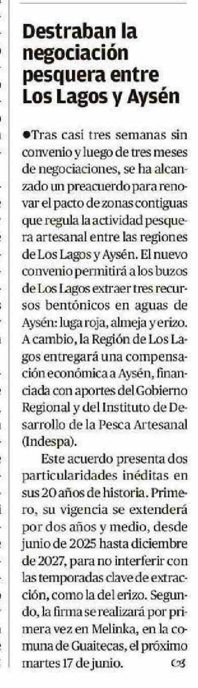 Destraban la negociación Los Lagos y Aysen pesquera entre