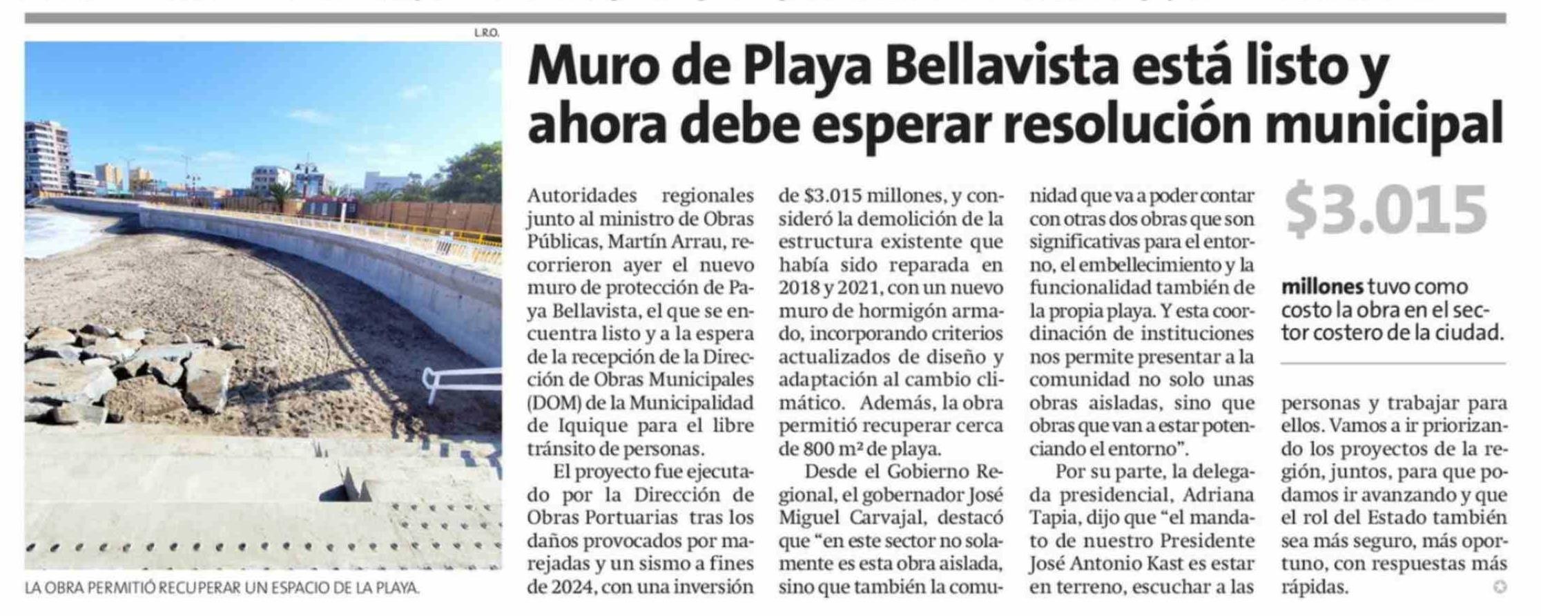 Muro de Playa Bellavista está listo y ahora debe esperar resolución municipal
