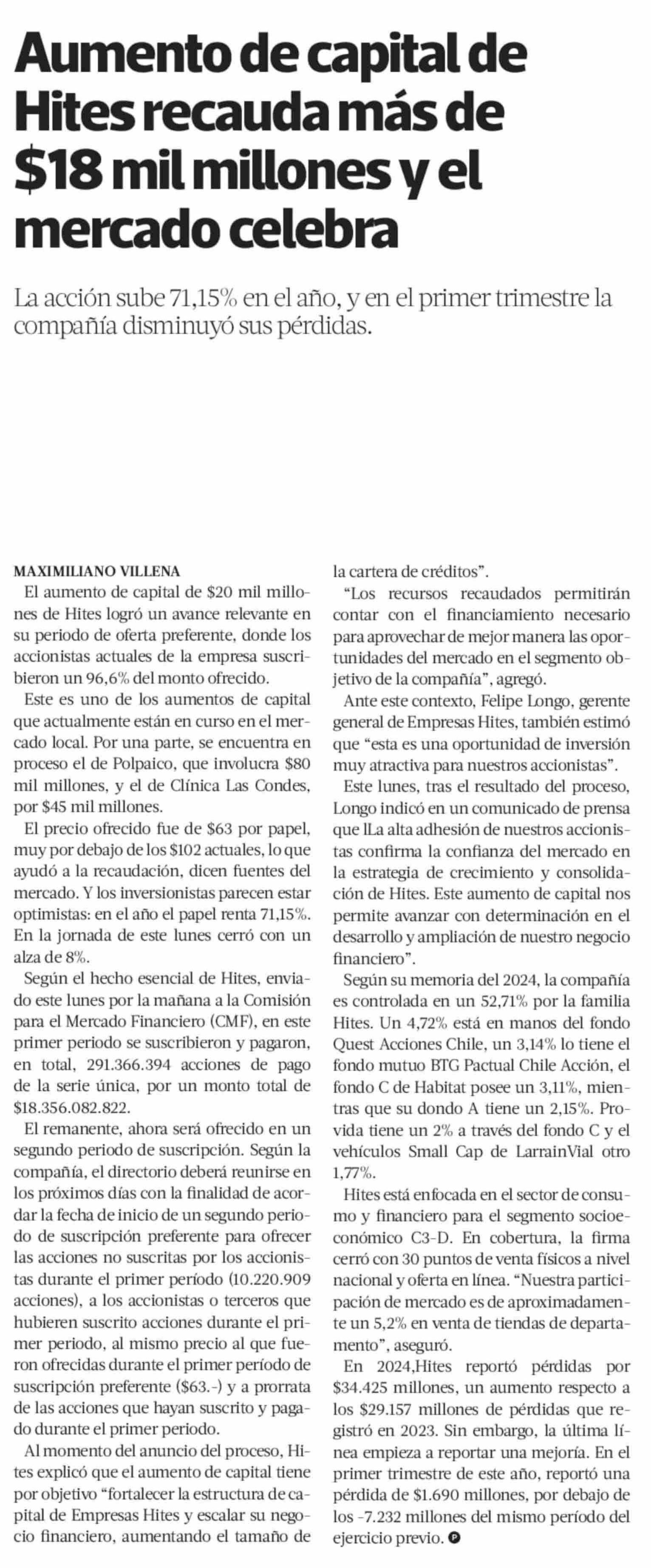 Aumento de capital de Hites recauda más de $18 mil millones y el mercado celebra