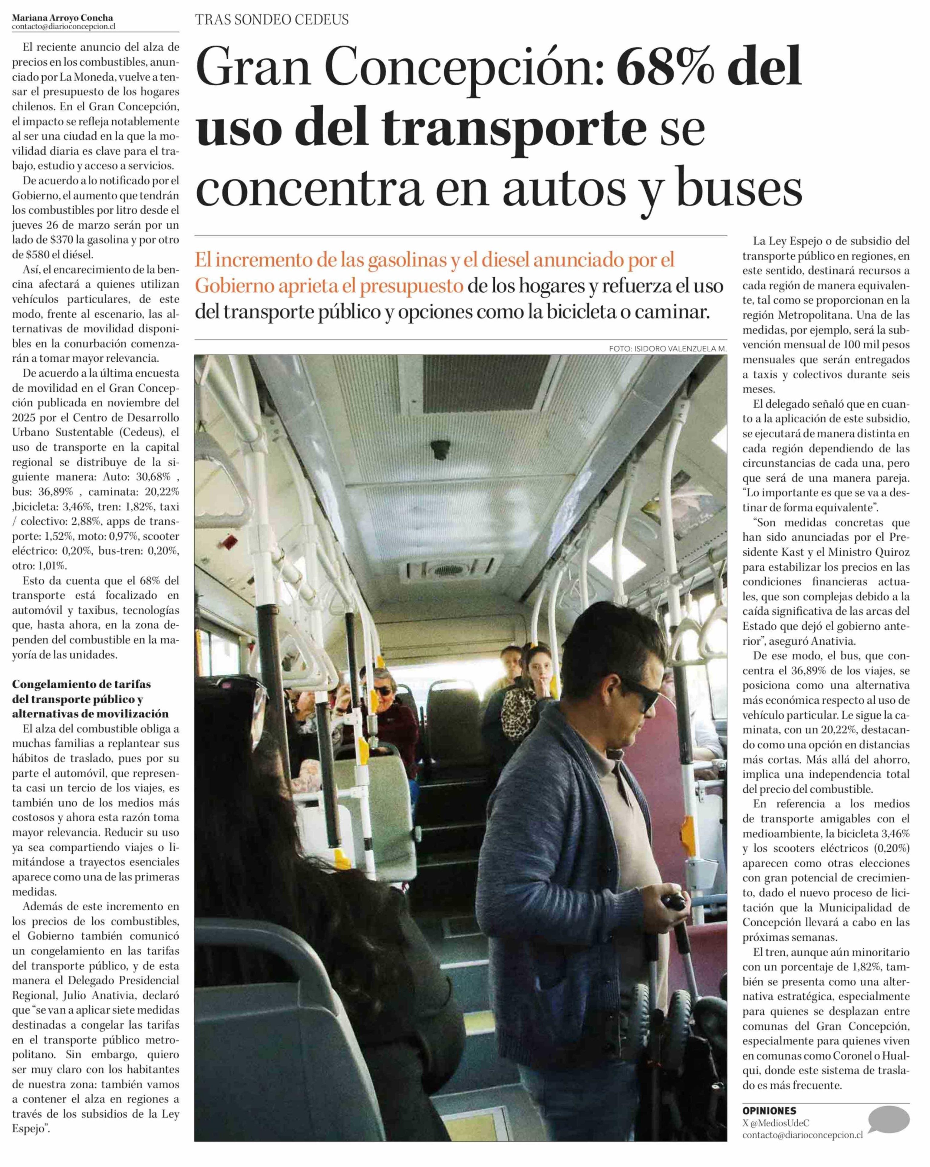 Gran Concepción: 68% del uso del transporte se concentra en autos y buses