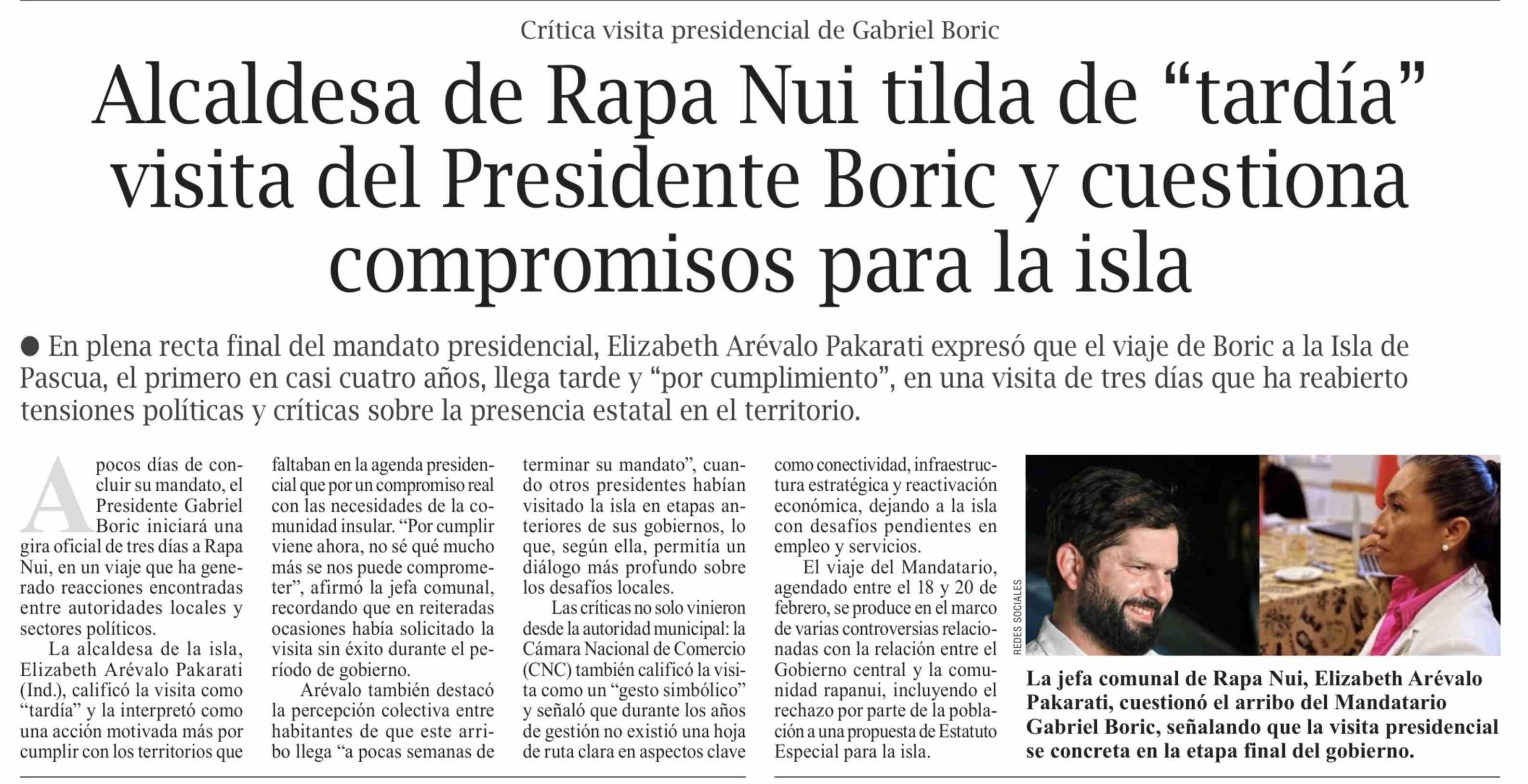 Alcaldesa de Rapa Nui tilda de "tardía" visita del Presidente Boric y cuestiona compromisos para la isla