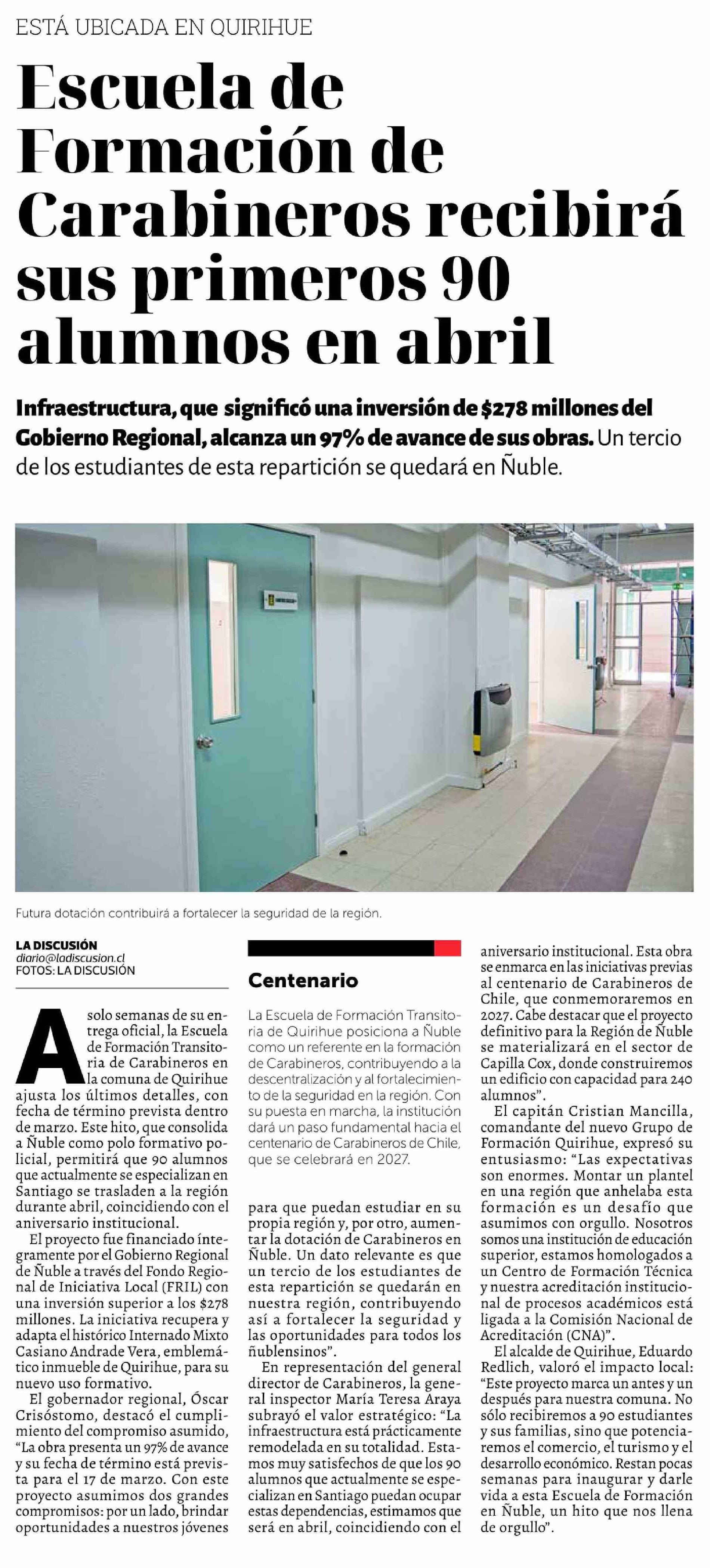 Escuela de Formación de Carabineros recibirá sus primeros 90 alumnos en abril