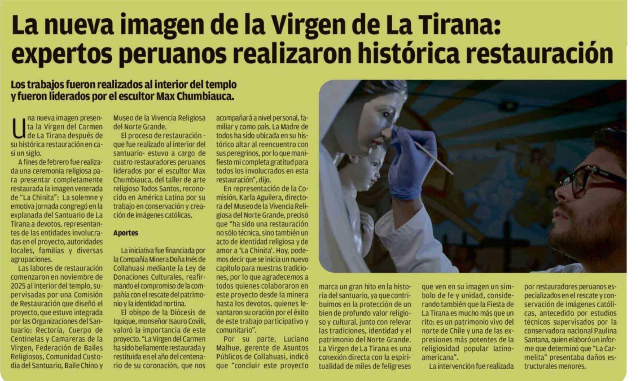 La nueva imagen de la Virgen de La Tirana: expertos peruanos realizaron histórica restauración