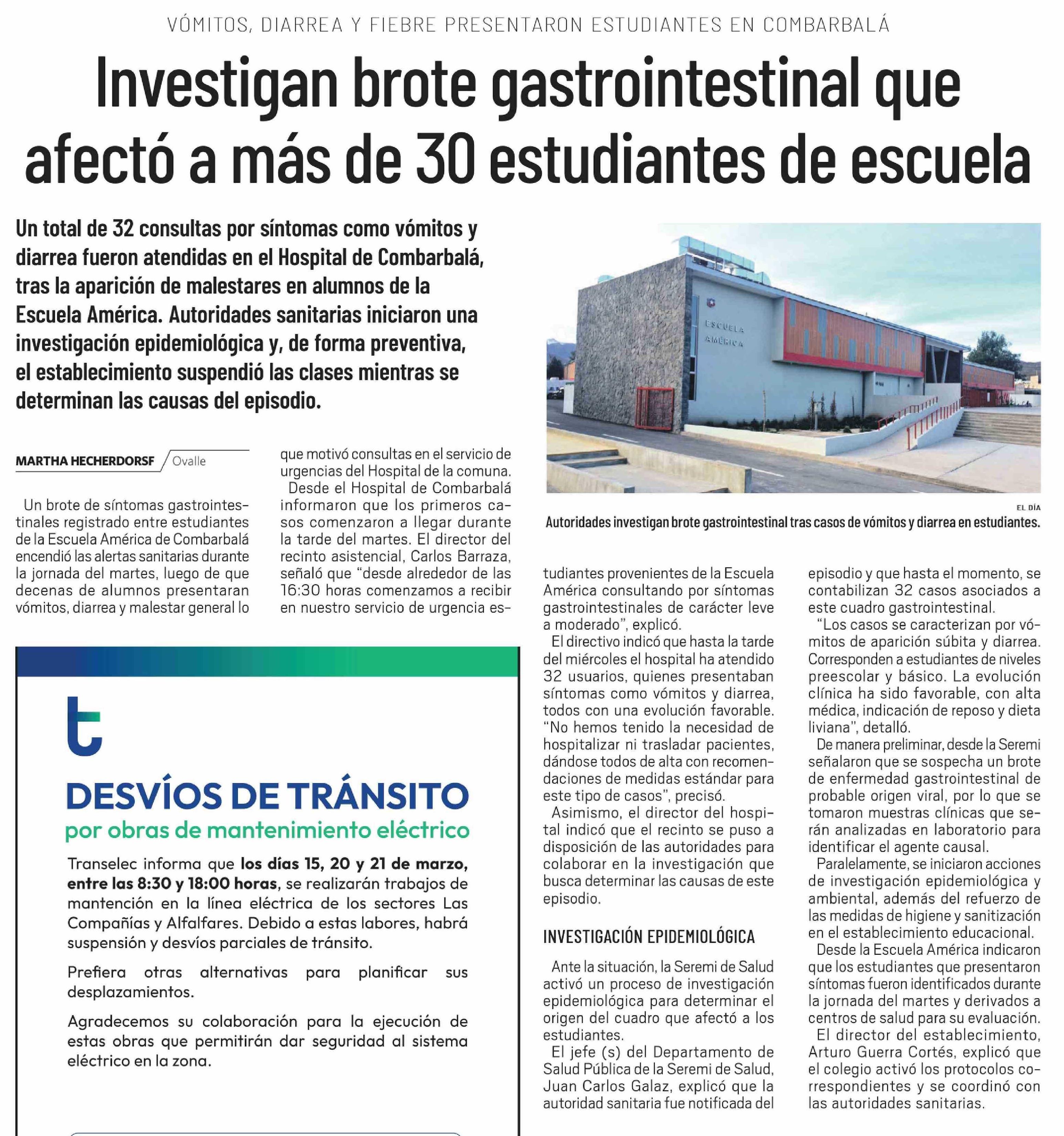 Investigan brote gastrointestinal que afectó a más de 30 estudiantes de escuela