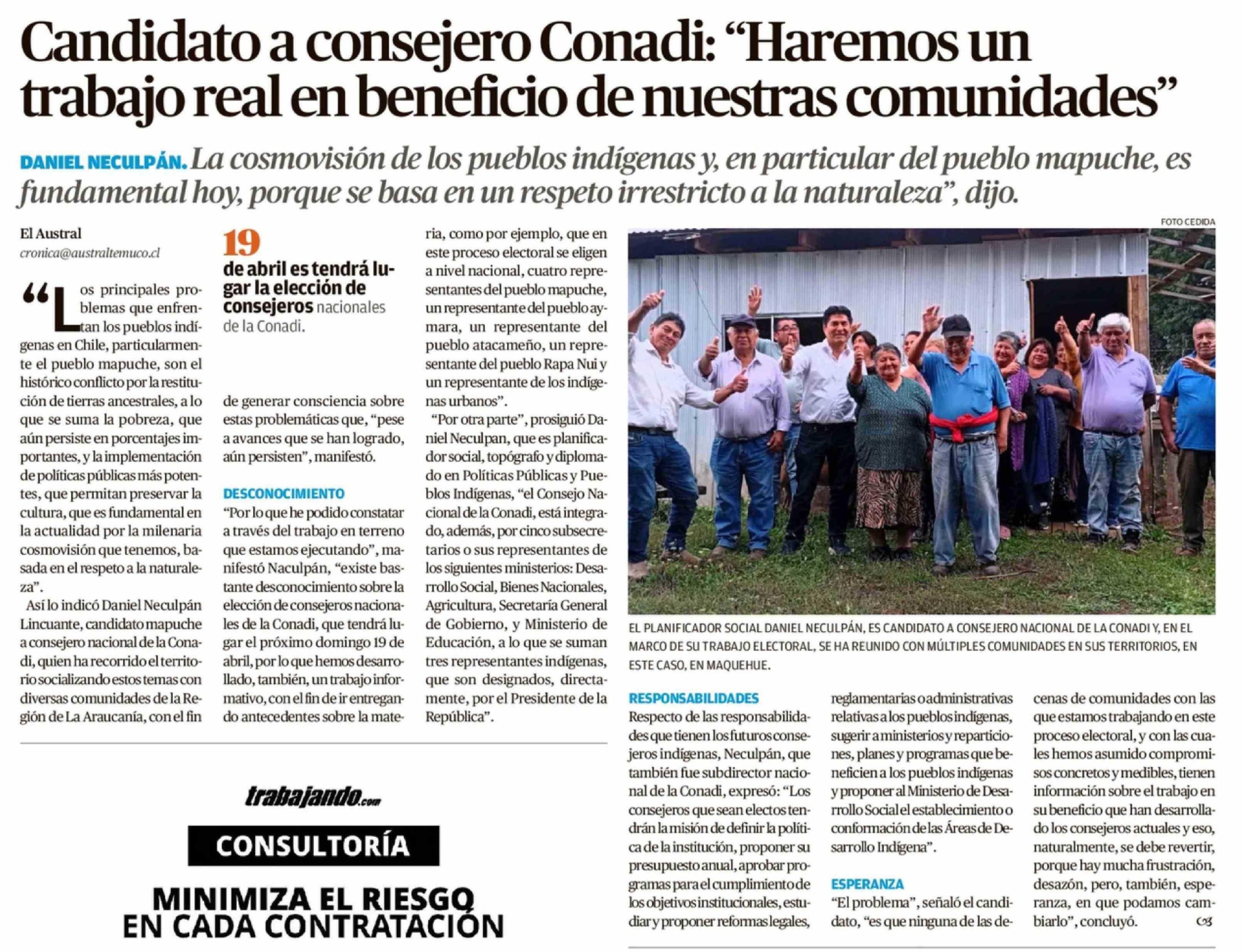 Candidato a consejero Conadi: "Haremos un trabajo real en beneficio de nuestras comunidades"