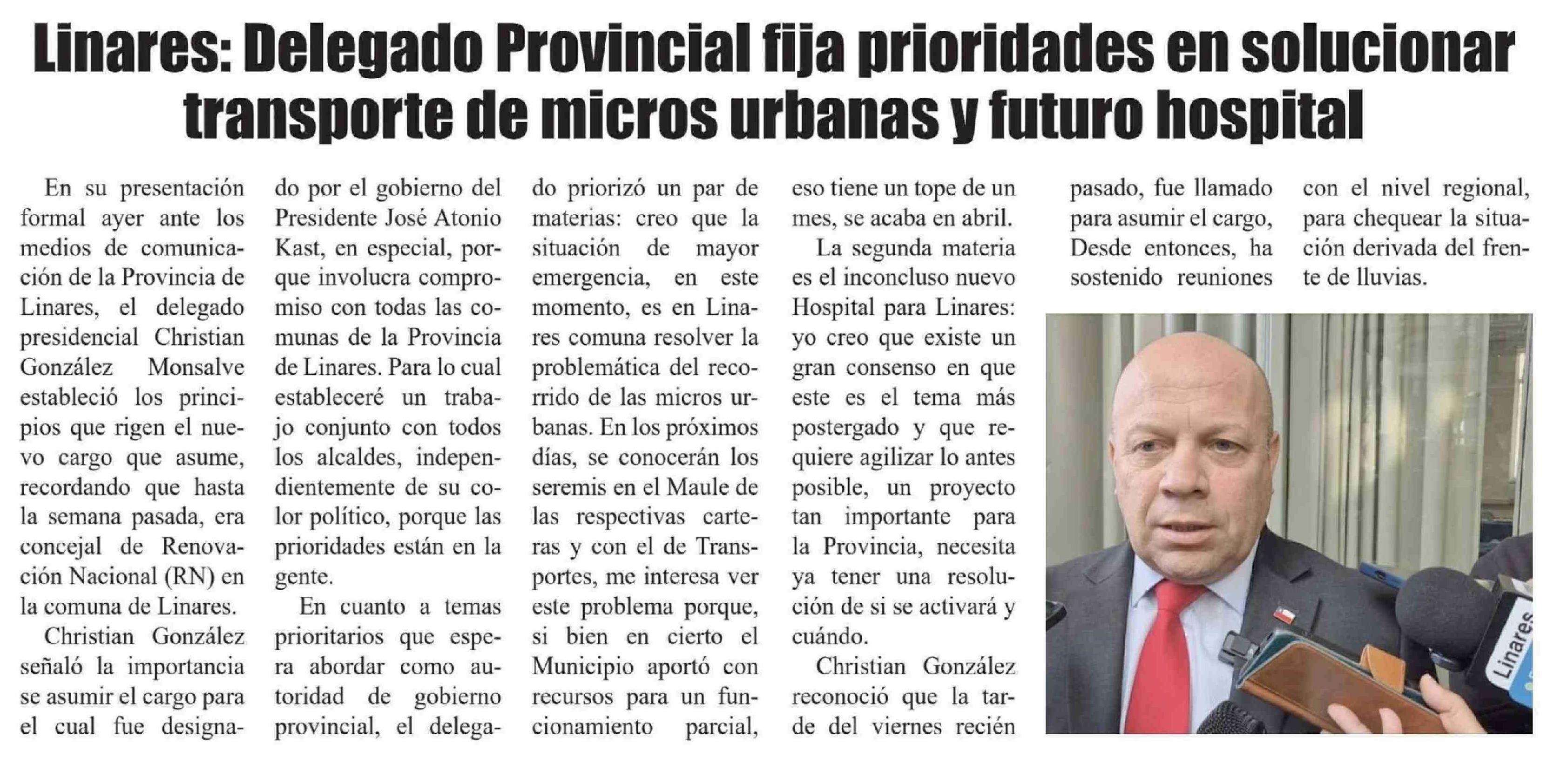 Linares: Delegado Provincial fija prioridades en solucionar transporte de micros urbanas y futuro hospital