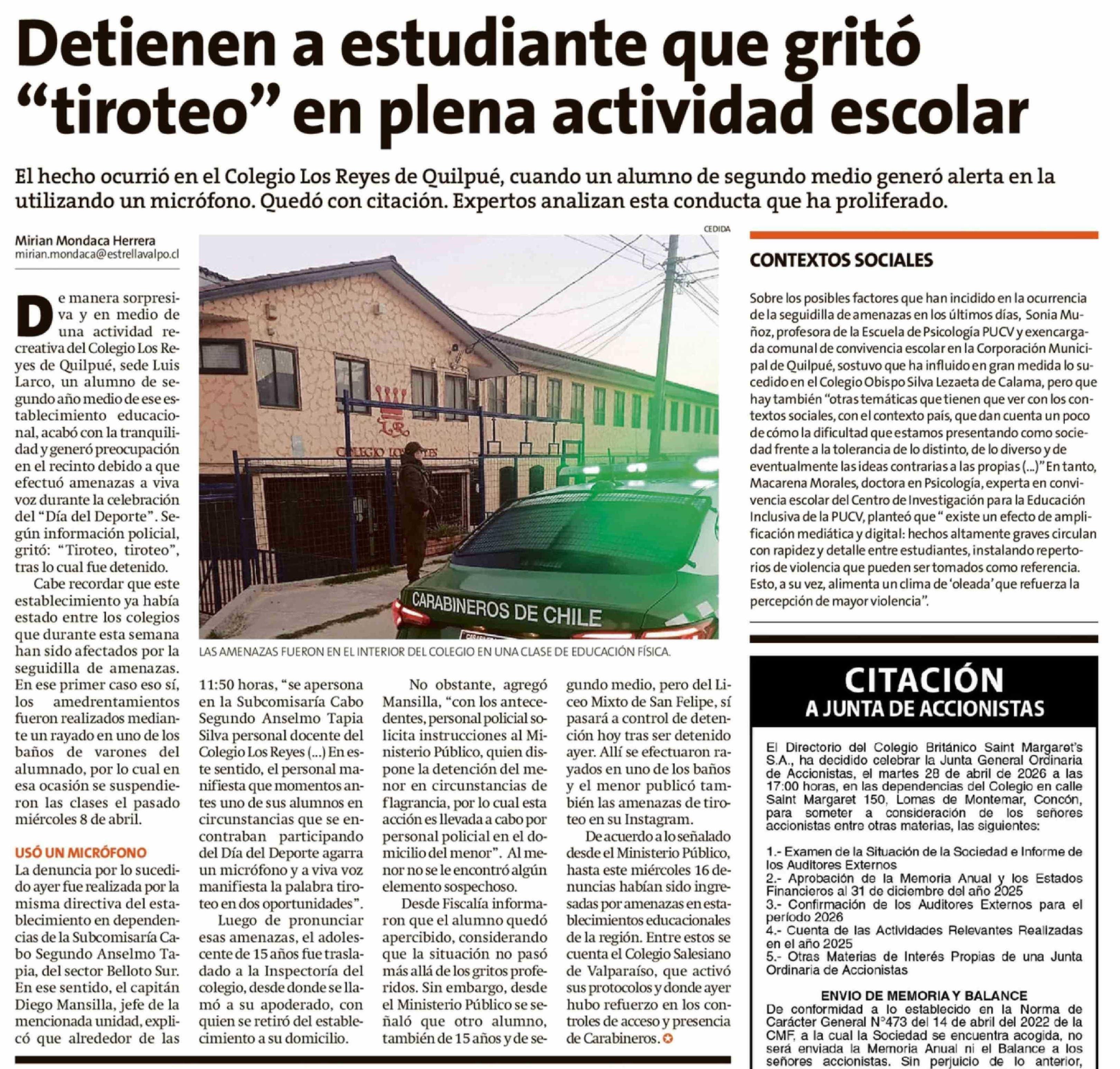 Detienen a estudiante que gritó "tiroteo" en plena actividad escolar