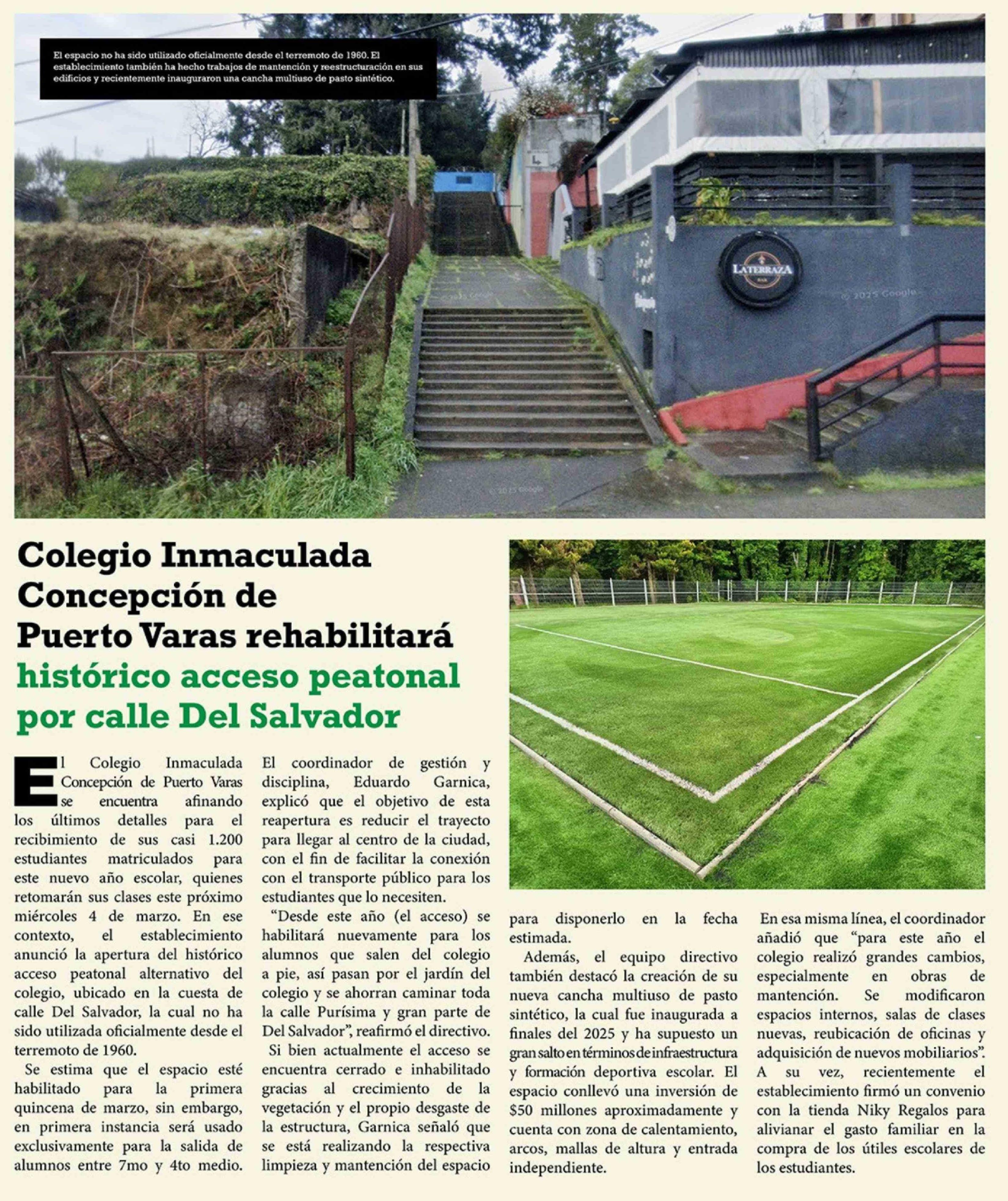 Colegio Inmaculada Concepción de Puerto Varas rehabilitará histórico acceso peatonal por calle Del Salvador