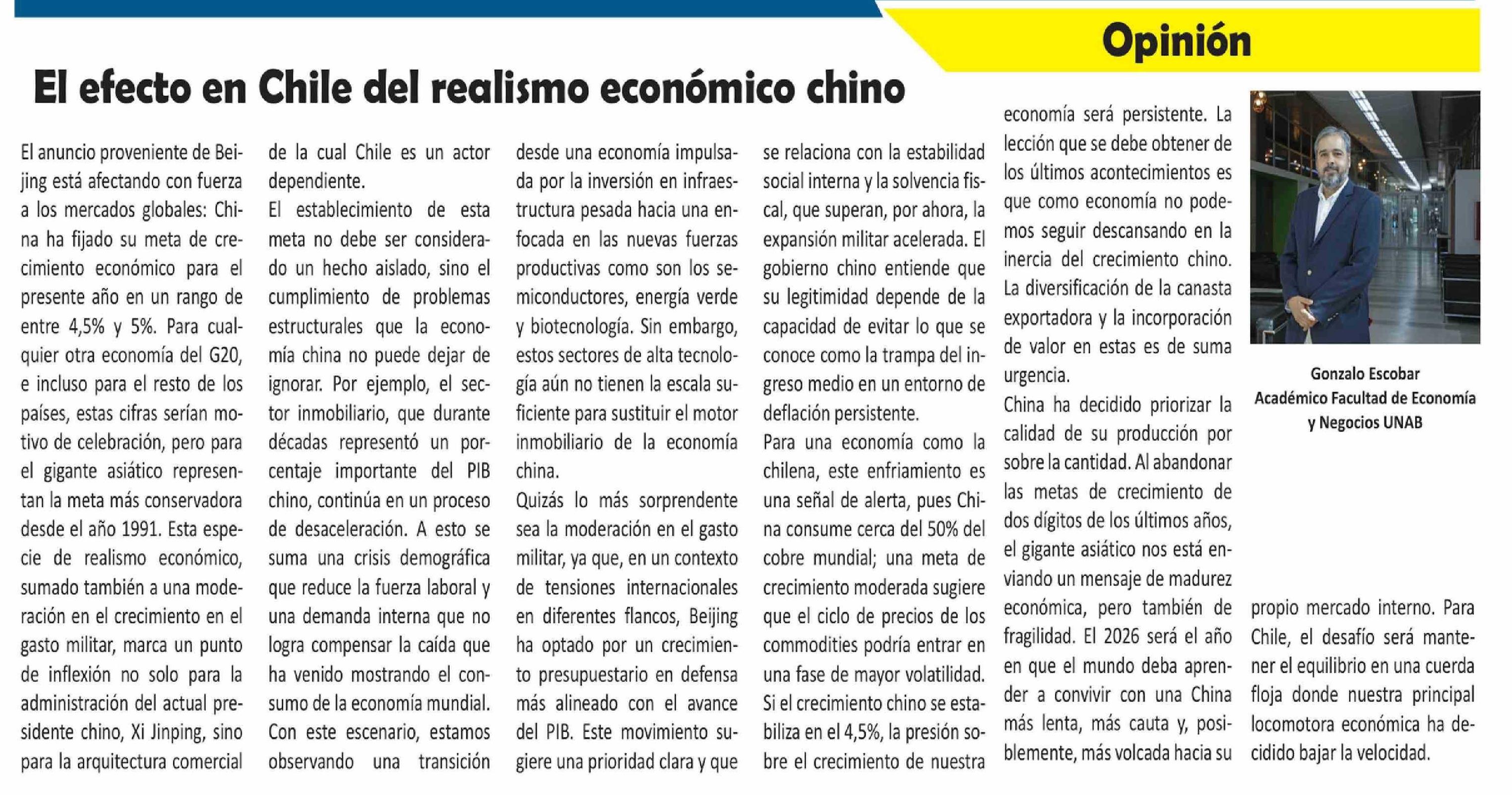 Columnas de Opinión: El efecto en Chile del realismo económico chino