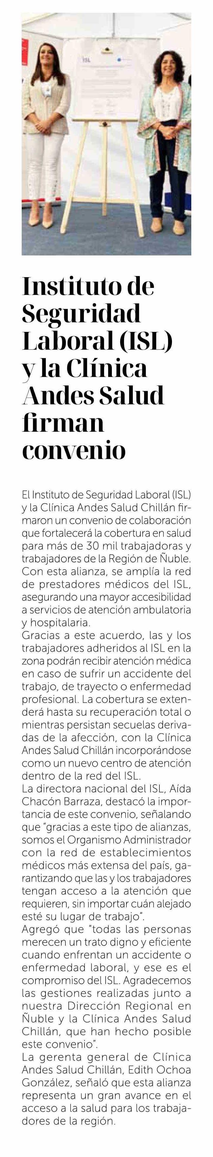 Instituto de Seguridad Laboral (IST) v la Clínica Andes Salud firman convenio