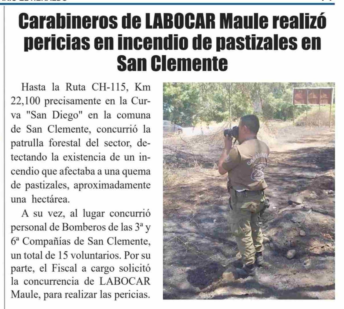 Carabineros de LABOCAR Maule realizó pericias en incendio de pastizales en San Clemente