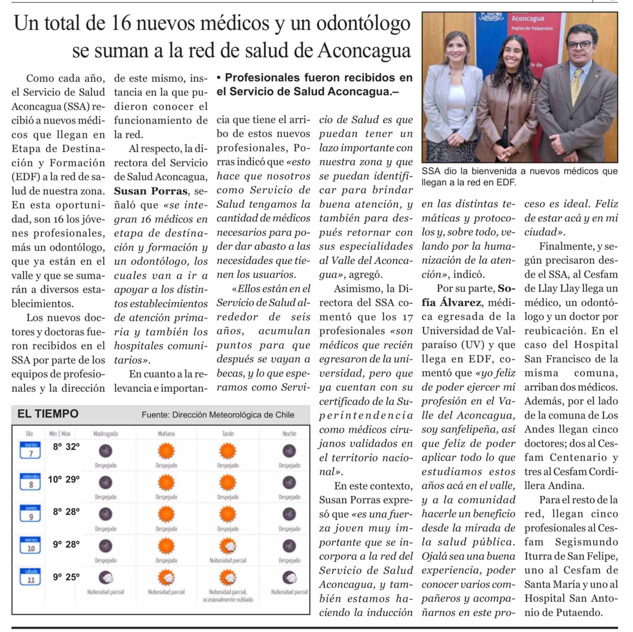Un total de 16 nuevos médicos y un odontólogo se suman a la red de salud de Aconcagua
