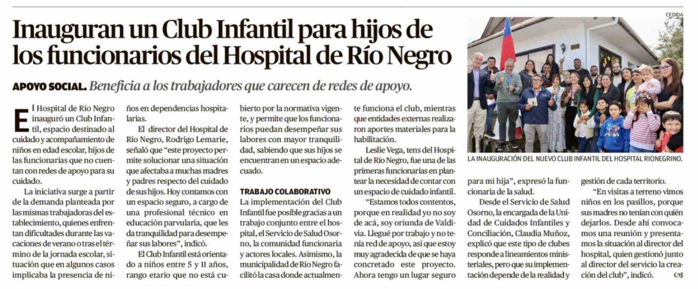 Inauguran un Club Infantil para hijos de los funcionarios del Hospital de Río Negro