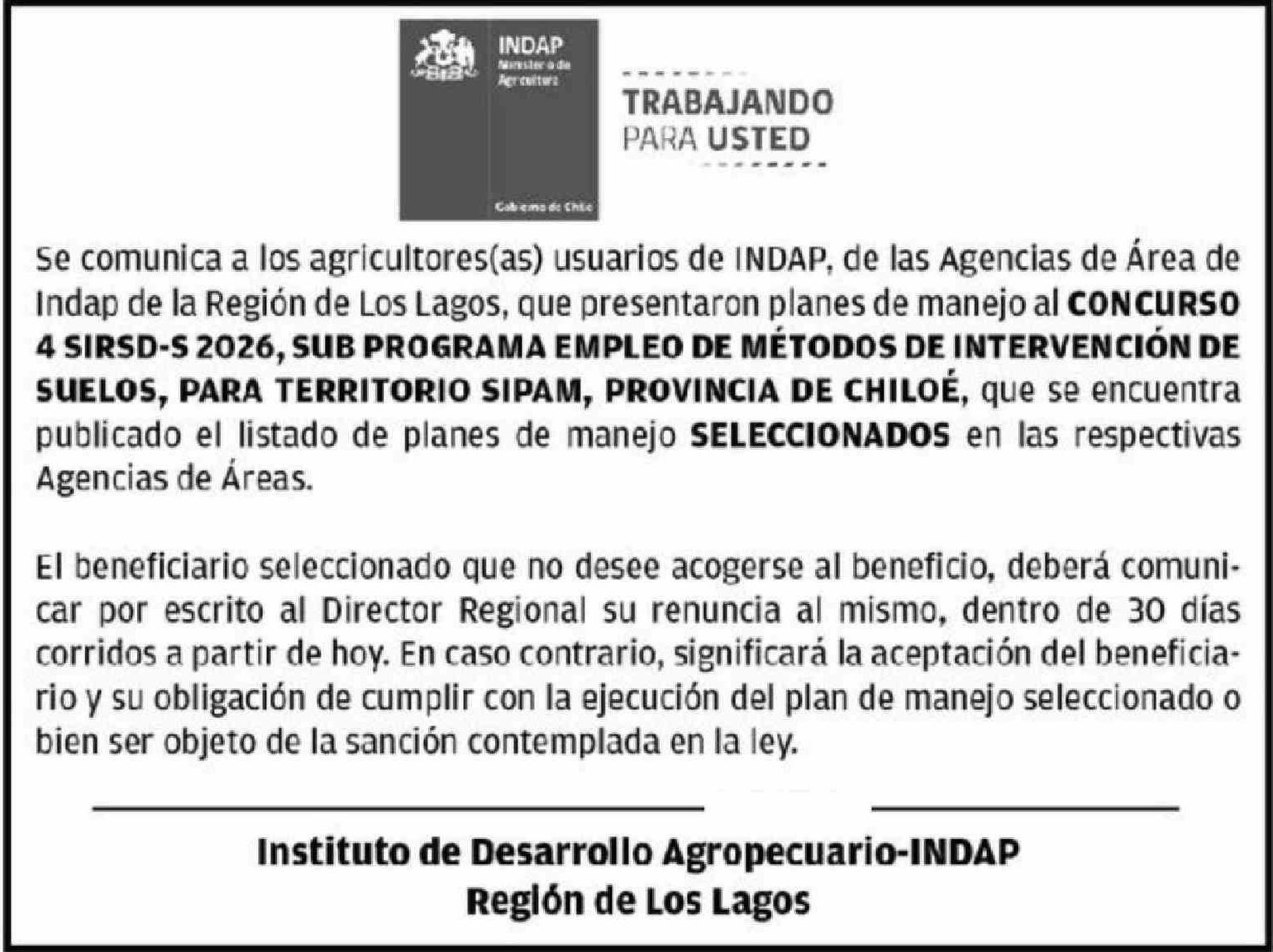 Extractos: INDAP
