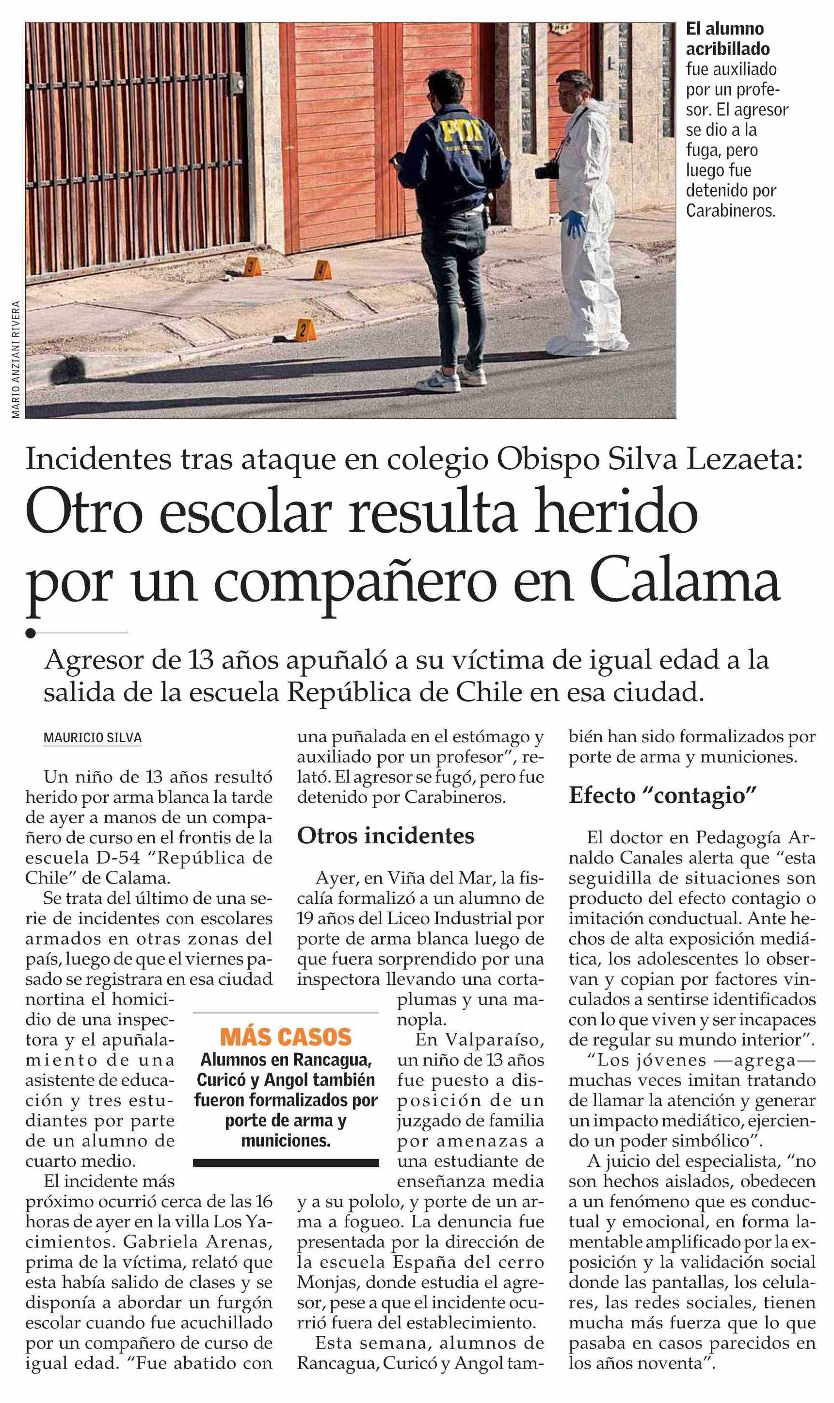 Otro escolar resulta herido por un compañero en Calama