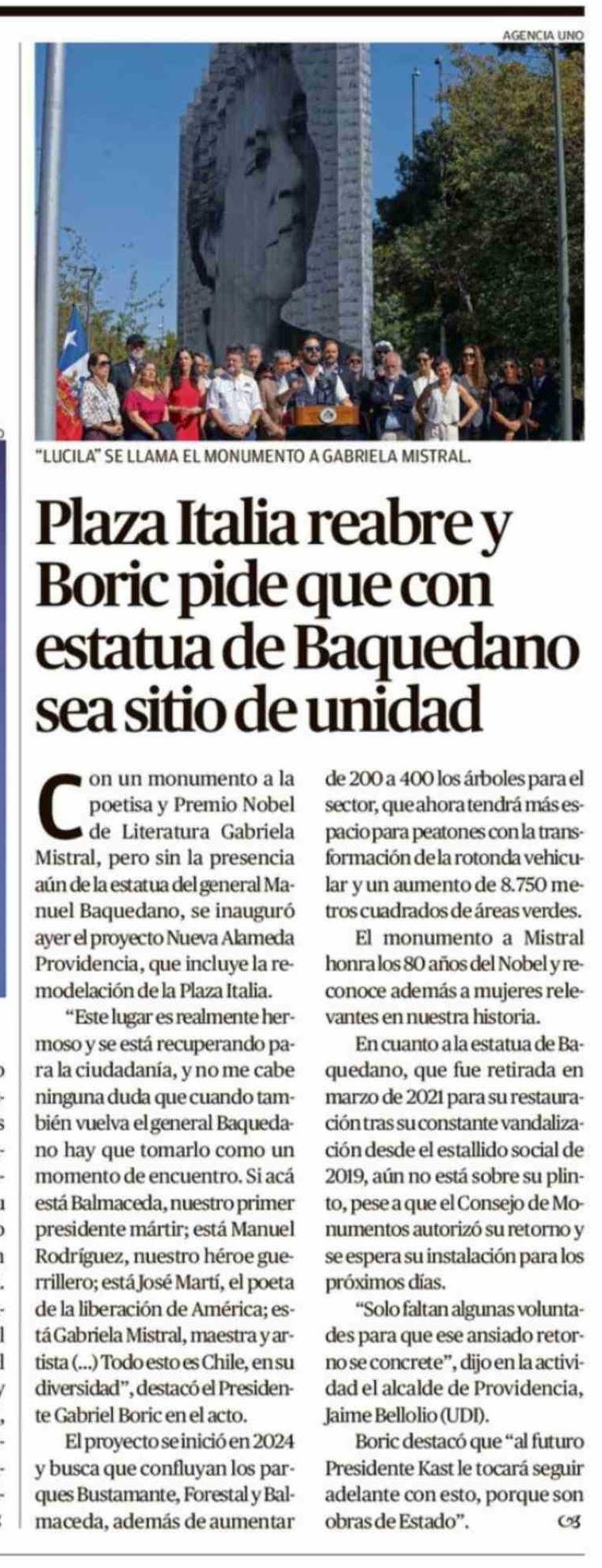 Plaza Italia reabre y Boric pide que con estatua de Baquedano sea sitio de unidad
