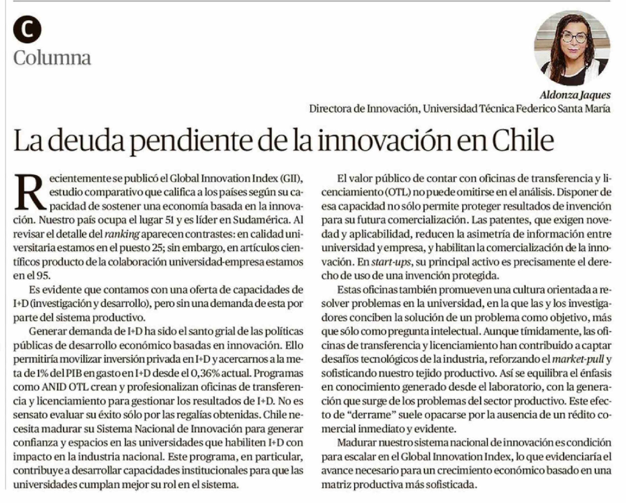 Columnas de Opinión: La deuda pendiente de la innovación en Chile